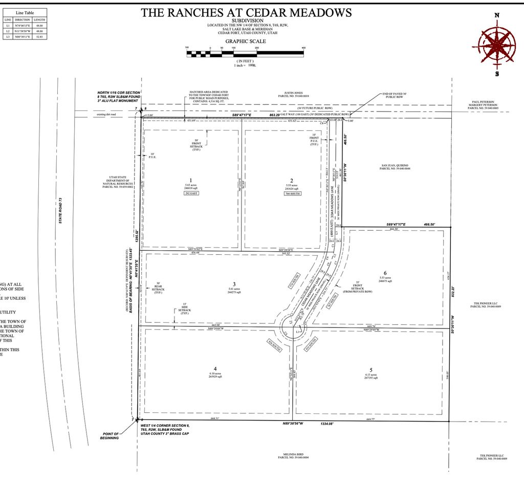 Incredible Value at $439,999 for All 5.53 Acres! That's just $79,566 per acre- an exceptional deal for improved land with water rights in Utah County. Whether you're planning to build your dream ranch, or simply invest and hold, opportunities like this don't come around often. Secure your piece of the countryside while it lasts! The Ranches at Cedar Meadows is a beautiful private subdivision in Cedar Fort. Lot #6 is 5.53 acres of land with stunning unobstructed views of the Cedar Valley. Bring your dream home to life in this quiet community- ideal for those looking to enjoy open space, fresh air, and a slower pace of life. With ample room for homesteading, gardens, farm animals, and horses, these lots offer the perfect blend of country charm and practical living. Utilities & Infrastructure: Power and high-speed fiber are stubbed to the lot, making it easy to stay connected while enjoying rural life. Natural gas installation is scheduled for completion by the end of May 2025. Access roads- JALT WAY and private CEDAR MEADOWS LANE- are graded and will be paved for smooth year-round access. Water & Septic: Each parcel includes 1 acre-foot of water rights- roughly three times the average household's yearly usage. Most neighboring lots are open to shared wells, offering cost savings and improved feasibility. Buyers are responsible for installing a septic system and private well when ready to build. Peace of Mind & Flexibility: There is no requirement to build, so you can keep the land in agricultural use for as long as you like. All parcels are Greenbelt-eligible, offering potential property tax benefits. Town ordinances do not require curb, gutter, or paved driveways- giving you more freedom in your design choices. Plus, enjoy NO HOA restrictions. Give us a call to snag up your dream land today!