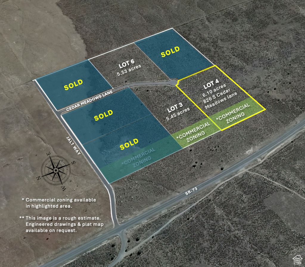 $509,999 is for all 6.1 acres! Only $83,600 per acre which is a screaming deal for land with improvements, water rights, and commercial potential in Utah County! Whether you're looking for an investment to buy and hold or build your dream ranch, this is a great opportunity. LOT #4! The Ranches at Cedar Meadows is a beautiful private subdivision in Cedar Fort. Lot #4 is 6.1 acres of land with stunning unobstructed views of the Cedar Valley. Bring your dream home to life in this quiet community- ideal for those looking to enjoy open space, fresh air, and a slower pace of life. With ample room for homesteading, gardens, farm animals, and horses, these lots offer the perfect blend of country charm and practical living. Utilities & Infrastructure: Power and high-speed fiber are stubbed to the lot, making it easy to stay connected while enjoying rural life. Natural gas installation is scheduled for completion by the end of May 2025. Access roads- JALT WAY and private CEDAR MEADOWS LANE- are graded and will be paved for smooth year-round access. Water & Septic: Each parcel includes 1 acre-foot of water rights- roughly three times the average household's yearly usage. Most neighboring lots are open to shared wells, offering cost savings and improved feasibility. Buyers are responsible for installing a septic system and private well when ready to build. Zoning Flexibility & Investment Potential: This 6.1-acre lot includes approximately 2.5 acres of commercial overlay. With the current RA-4 zoning, you have the option to subdivide 2.1 acres for commercial use along the west lot line- leaving the remaining 4 acres for residential or agricultural purposes. Whether you're planning to run a business near home or looking for long-term investment versatility, this lot offers unmatched potential. Peace of Mind & Flexibility: There is no requirement to build, so you can keep the land in agricultural use for as long as you like. All parcels are Greenbelt-eligible, offering potential property tax benefits. Town ordinances do not require curb, gutter, or paved driveways- giving you more freedom in your design choices. Plus, enjoy NO HOA restrictions. Give us a call to snag up your dream land today!