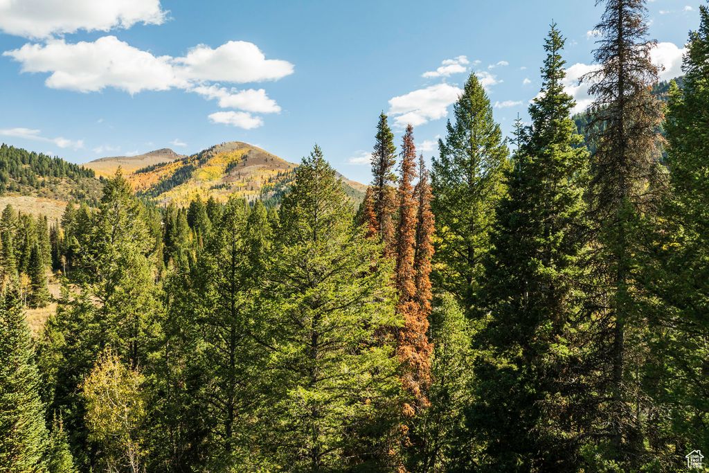VIEW DESCRIPTION | Mountain(s), Trees/Woods |