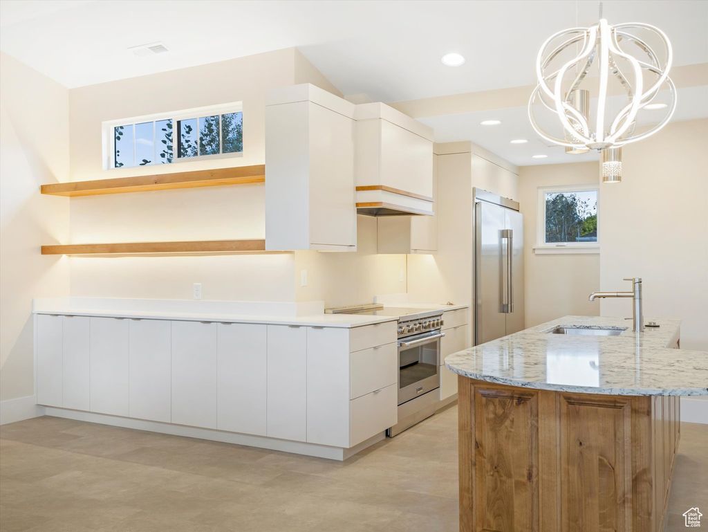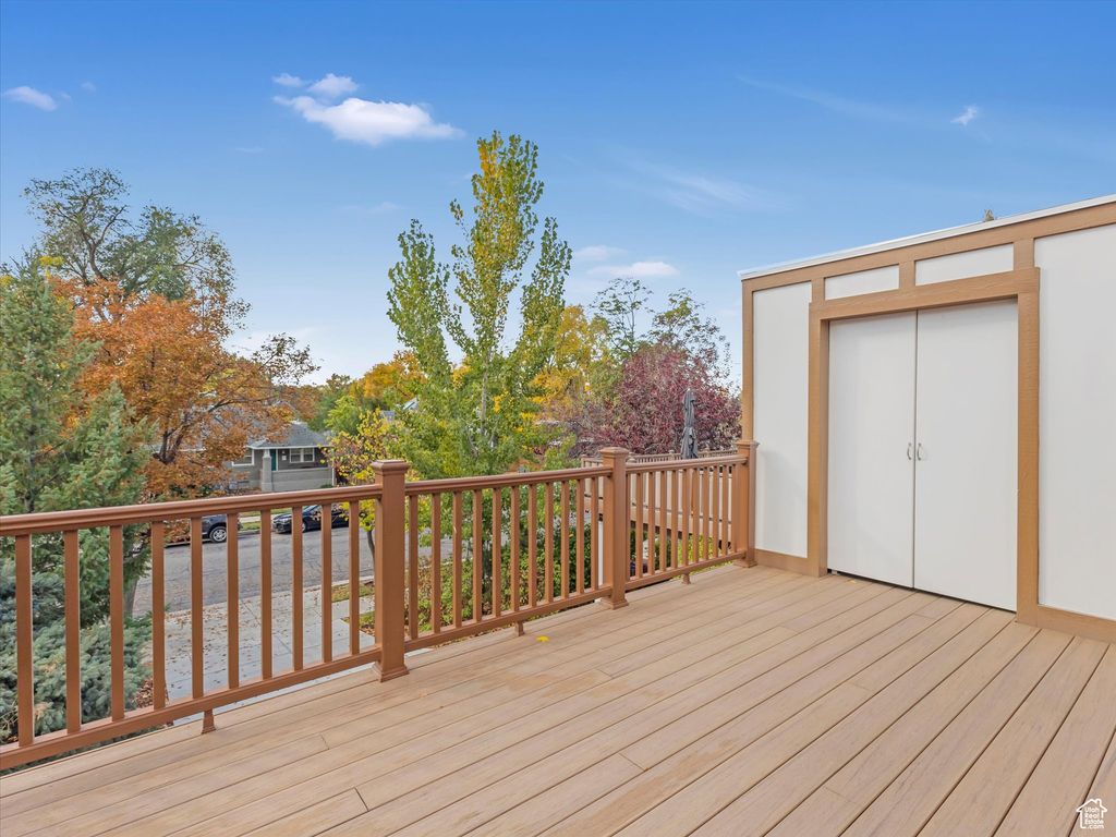 Brand new luxury home in Liberty Wells Place, the best-kept secret in the city. This highly desirable neighborhood boasts a park-like atmosphere with 13 homes on a private street. This new single-family home has amenities you can't find anywhere else in the area, starting with a composite deck featuring mountain and valley views, and a spacious open-concept kitchen and great room. The unique curved staircase features a striking recessed ceiling with a gorgeous chandelier in the center. The well-designed floor plan offers three bedrooms, three bathrooms, a great room, a dining area, a finished basement, and laundry on the main floor and on the lower level. You can prepare delicious meals in the gourmet kitchen equipped with a professional induction range, stainless steel appliances, a side-by-side fridge and freezer, and a microwave. The kitchen also offers sleek modern cabinetry, a center island, quartz countertops, open shelving and pendant lighting. Relax and unwind in the large great room off of the kitchen near the cozy gas fireplace surrounded by a sandstone hearth, and contemporary wood mantel. The luxurious spa-like bathrooms feature clean white solid surface bath surrounds, modern custom cabinetry, quality fixtures, and lighting. The stunning exterior is finished with stone, stucco, brick and board, and batten accents. Thoughtfully selected upgrades throughout including tall baseboards, transom accent windows, designer hardware, modern lighting, ceiling fans, closet organizer systems, french doors, crown molding, and luxury vinyl flooring. Retreat to the large second-floor deck off of the great room to dine or enjoy the views. The composite deck is complete with a natural gas BBQ connection, hose bib, and storage shed. Take advantage of utility cost savings thanks to the energy-efficient windows, 2X6 walls, tankless water heater, extra insulation, and zoned heat pump system for cooling and heating. The attached garage has an extra wide section that could be used for gear storage or motorcycle/bike parking. The professionally landscaped yard has carefully cultivated plants, flowers, and mature trees. Liberty Wells Place is located just minutes from Liberty Park, downtown Salt Lake City, the University of Utah, Sugar House, and the Salt Lake International Airport. You can rest easy knowing that the water bill, sewer, landscape maintenance and snow removal, cable and internet will be covered by the HOA.