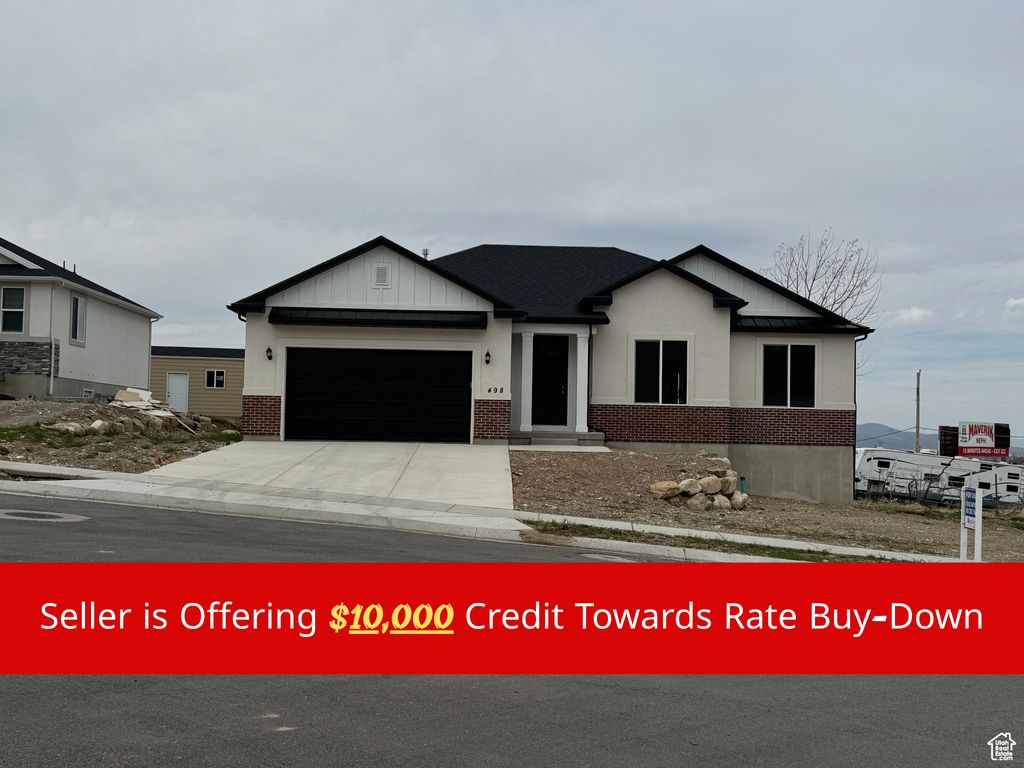 Move In Ready! Beautiful new home on the East bench of Santaquin. Open floor plan with large living area and kitchen. Made for entertaining. Big windows for natural light. Granite countertops throughout. LVP and carpet flooring. Master bath with separate tub and shower with tile. Daylight basement. Great location in quiet neighborhood. No HOA fees. Seller will contribute to buy down the interest rate.
