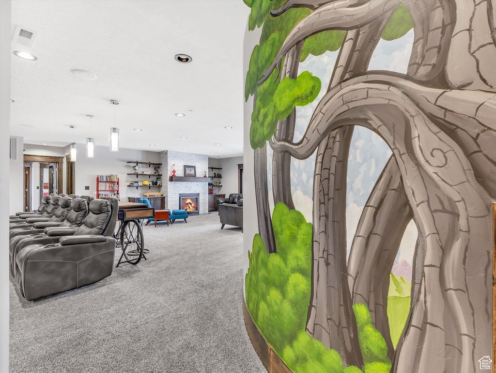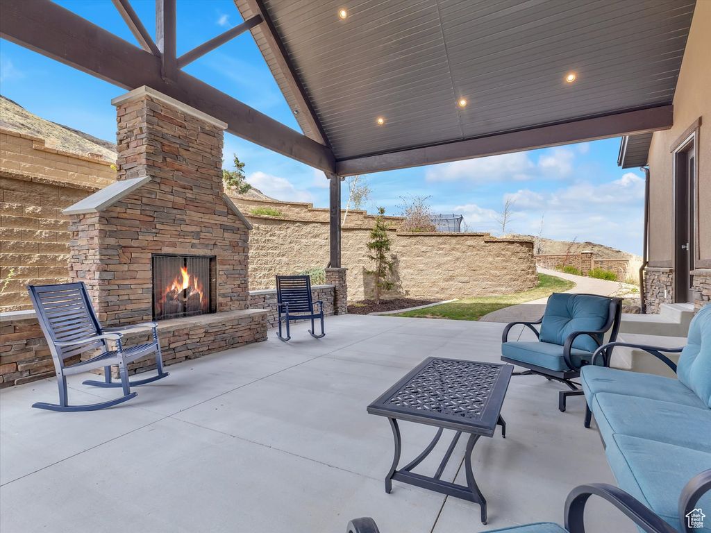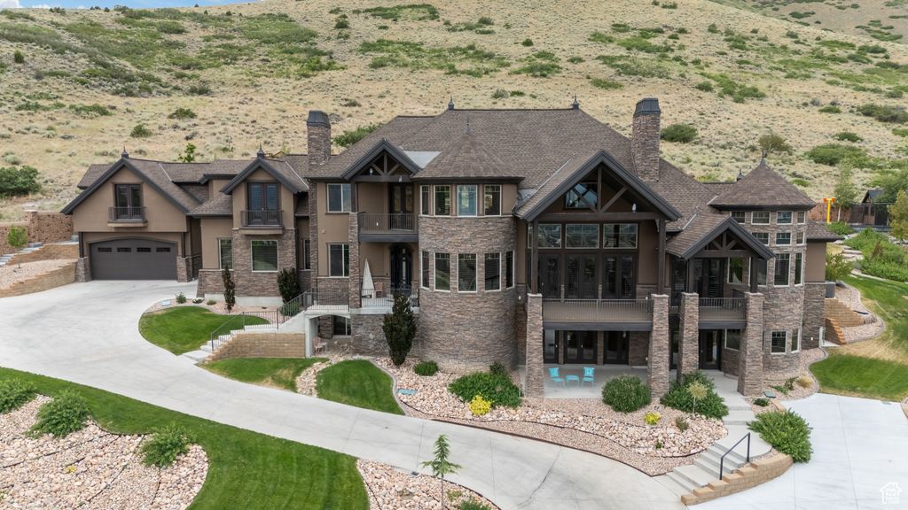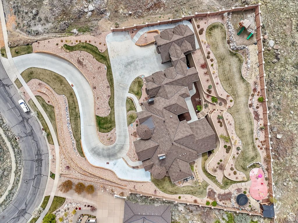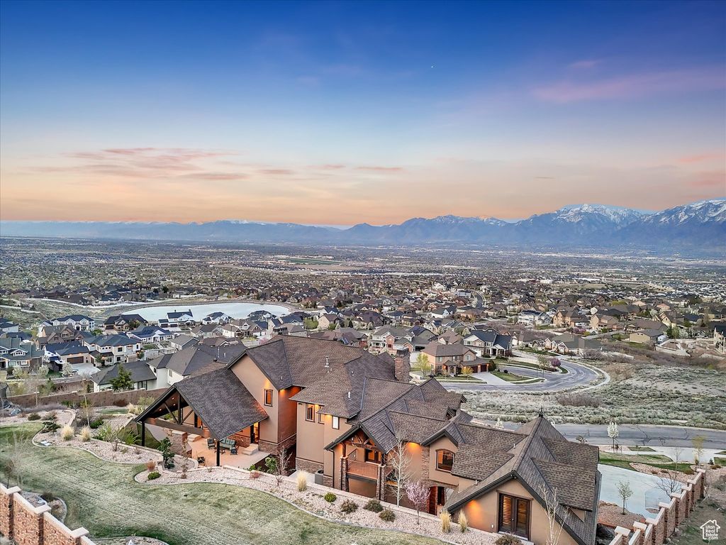Exquisite Herriman Estate with Panoramic Views, Dual Mother-in-Law Suites, and Unmatched Amenities. Elevate your lifestyle in this extraordinary 10,845 sq ft custom estate, perfectly positioned on 1.12 acres in the prestigious Secret Canyon Circle. Enjoy sweeping, unobstructed mountain and valley views from nearly every room, and retreat to a private, fenced backyard oasis with a splash pad, built-in trampoline, swingset, and low-maintenance landscaping. This residence is thoughtfully designed for both everyday comfort and grand entertaining. Inside, discover two separate mother-in-law/ADU suites, each with a private entrance and full kitchen, and one with its own laundry, offering unparalleled flexibility for guests or multigenerational living. The heart of the home is an oversized chef's kitchen featuring a premium 48" dual fuel range with six burners and an infrared griddle, complemented by built-in 30" refrigerator and freezer units for seamless integration and ample storage. A state-of-the-art convection steam oven adds versatility, allowing for healthy, precise cooking with steam and convection modes. This culinary space also includes a hidden walk-in pantry and flows effortlessly to an expansive covered patio with a gas fireplace, stubbed gas BBQ, and hot tub connection-perfect for year-round entertaining. The main level impresses with soaring two-story ceilings in the main gathering areas, 10-foot ceilings elsewhere, and 8-foot solid wood doors throughout. A sunlit office with a gas fireplace, built in bookcases, expansive living and dining spaces, and a luxurious primary suite featuring a spa bath, radiant heat floors, and a private deck to savor panoramic valley and mountain views create a serene retreat. Upstairs, enjoy three spacious en suite bedrooms, each with a walk in closet, a game room with a slide to the main level, dual staircase access, and a versatile loft. The walk-out basement is an entertainer's dream, boasting an expansive sports bar with three TVs, a dishwasher, a built-in ice maker, a billiards area, a family room with a fireplace, built in bookcases, an oversized theater room with stadium seating, and a charming kids' playroom under the stairs featuring a custom-painted mural. Additional highlights include a five-car heated garage, advanced smart-home technology, central vacuum, and premium hardwood flooring throughout. Every detail in this home reflects exceptional craftsmanship and modern luxury. Schedule your private tour today and experience the unmatched lifestyle this one-of-a-kind Herriman estate offers.