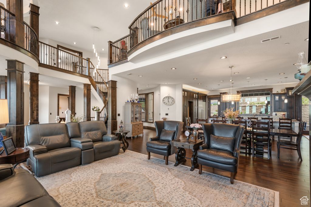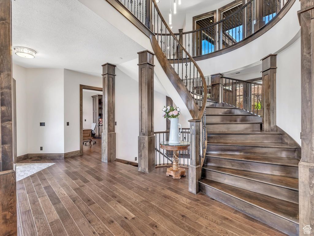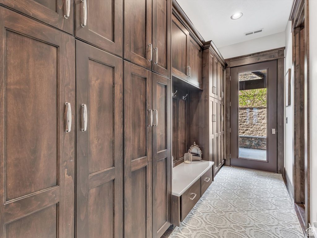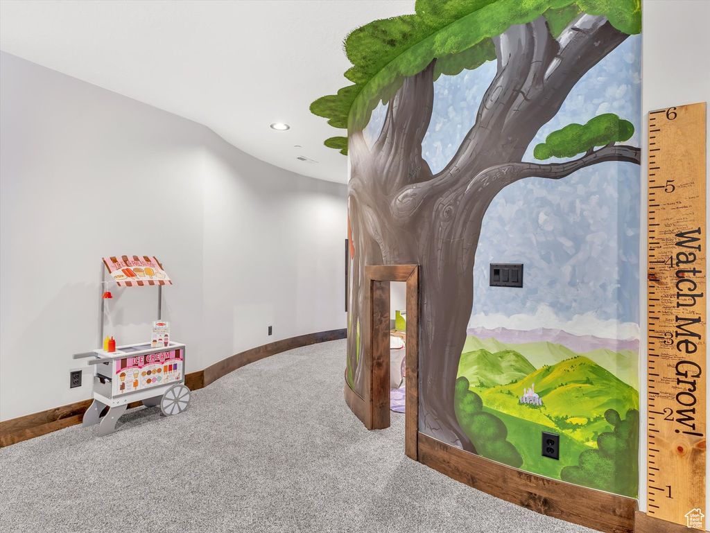 Exquisite Herriman Estate with Panoramic Views, Dual Mother-in-Law Suites, and Unmatched Amenities. Elevate your lifestyle in this extraordinary 10,845 sq ft custom estate, perfectly positioned on 1.12 acres in the prestigious Secret Canyon Circle. Enjoy sweeping, unobstructed mountain and valley views from nearly every room, and retreat to a private, fenced backyard oasis with a splash pad, built-in trampoline, swingset, and low-maintenance landscaping. This residence is thoughtfully designed for both everyday comfort and grand entertaining. Inside, discover two separate mother-in-law/ADU suites, each with a private entrance and full kitchen, and one with its own laundry, offering unparalleled flexibility for guests or multigenerational living. The heart of the home is an oversized chef's kitchen featuring a premium 48" dual fuel range with six burners and an infrared griddle, complemented by built-in 30" refrigerator and freezer units for seamless integration and ample storage. A state-of-the-art convection steam oven adds versatility, allowing for healthy, precise cooking with steam and convection modes. This culinary space also includes a hidden walk-in pantry and flows effortlessly to an expansive covered patio with a gas fireplace, stubbed gas BBQ, and hot tub connection-perfect for year-round entertaining. The main level impresses with soaring two-story ceilings in the main gathering areas, 10-foot ceilings elsewhere, and 8-foot solid wood doors throughout. A sunlit office with a gas fireplace, built in bookcases, expansive living and dining spaces, and a luxurious primary suite featuring a spa bath, radiant heat floors, and a private deck to savor panoramic valley and mountain views create a serene retreat. Upstairs, enjoy three spacious en suite bedrooms, each with a walk in closet, a game room with a slide to the main level, dual staircase access, and a versatile loft. The walk-out basement is an entertainer's dream, boasting an expansive sports bar with three TVs, a dishwasher, a built-in ice maker, a billiards area, a family room with a fireplace, built in bookcases, an oversized theater room with stadium seating, and a charming kids' playroom under the stairs featuring a custom-painted mural. Additional highlights include a five-car heated garage, advanced smart-home technology, central vacuum, and premium hardwood flooring throughout. Every detail in this home reflects exceptional craftsmanship and modern luxury. Schedule your private tour today and experience the unmatched lifestyle this one-of-a-kind Herriman estate offers.