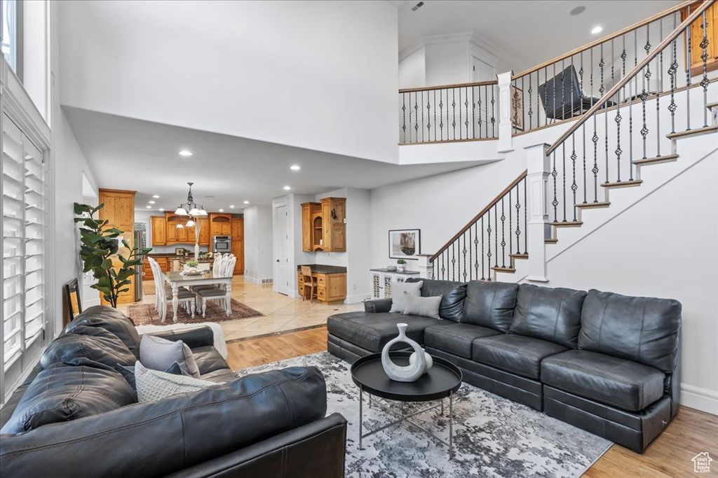 This stunning estate in Alpine, Utah, is a masterpiece of luxury and comfort. The home boasts a detached 6-car garage, a luxury resort-style backyard, radiant floor heating, a movie theater, a mother-in-law apartment, and some of the most beautiful, unobstructed views of the mountains and Utah Lake that you'll find. A serene water feature enhances the ambiance upon entry to the home. The interior is beautifully finished with hardwood floors that are heated and vaulted ceilings, creating an airy and open feel. Custom cabinets and shelving adorn the office, a kids' study, and an extremely large custom closet/room off the master. Three separate furnaces, one for each floor. It includes a separate mother-in-law apartment with a kitchen, laundry, and private entrance for added convenience and privacy. Step outside onto the large second-floor balcony, where breathtaking, unobstructed views of the majestic mountains and Utah Lake will greet you. The property is extremely private with no visual obstructions. Car enthusiasts will appreciate the detached RV/boat garage and an incredible 10 total garage parking spaces. The detached garage has heating and cooling, air compressors, electricity, is 35 feet deep, and has 10-foot doors. For outdoor living, the home is second to none. It features a saltwater pool, a built-in hot tub, a natural gas fire pit, and an outdoor kitchen that includes a sink, BBQ, fridge, TV, surround sound, and seating for 13 people. Professional exterior lighting creates a beautiful evening atmosphere, and an indoor and outdoor surround sound system ensures your music can follow you wherever you go. Additional highlights include an advanced irrigation system, two separate staircases leading to the second floor, and two balconies on the upper level that offer some of the most spectacular views from the front and back imaginable. You'll be the master of entertainment, inside and out, at this luxury estate!