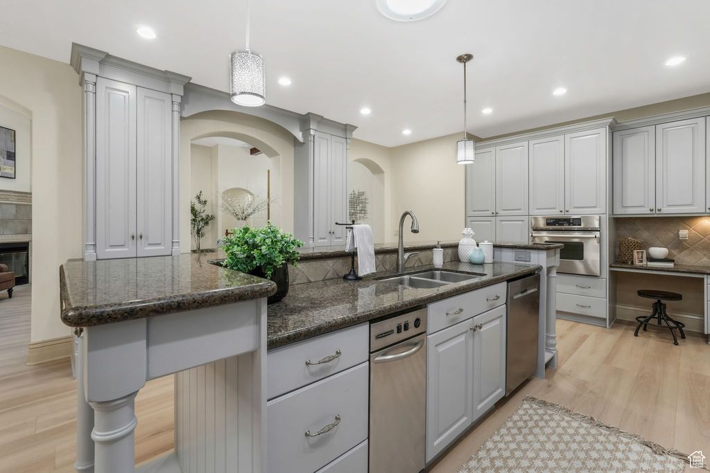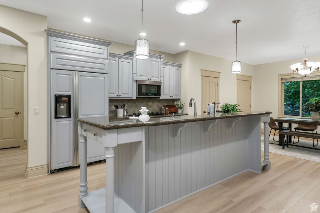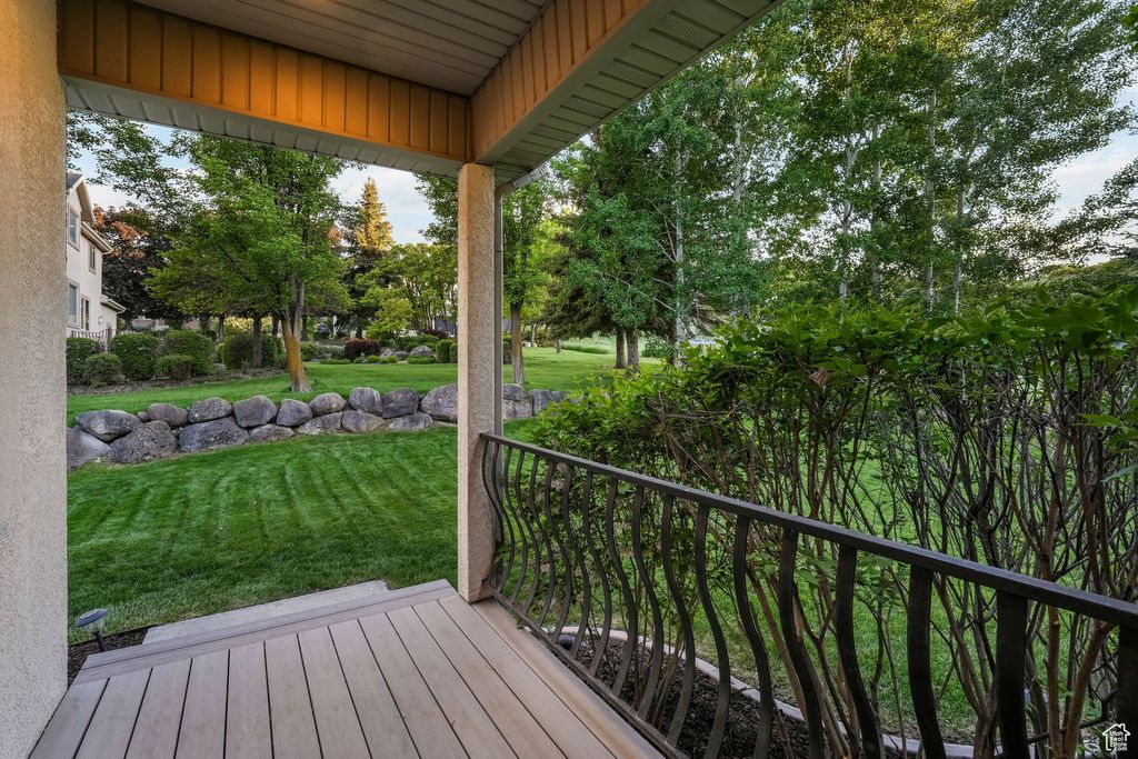 This 7 bedroom 5 bathroom 5508sf home is located in a quiet and coveted neighborhood in beautiful Alpine! The secluded backyard borders several acres of natural open space owned by Alpine City so you'll never have backyard neighbors! Highlights include; an open floor plan, tons of storage, oversized garage, huge driveway with potential RV parking. Inside the home you'll find a double island in the kitchen, high ceilings with wood beams in the family room. Easily access the deck from the family room, kitchen or primary bedroom. Simply by adding a door, part of the basement can be rented as a large apartment with full kitchen, master suite, fireplace, 9ft ceilings, and a walkout entrance with a large patio! Basement also has a bonus exercise / studio room. The home has brand new flooring throughout! This truly is an amazing home and it shows great! Square footage figures are provided as a courtesy estimate only and were obtained from county records. Buyer is advised to obtain an independent measurement.