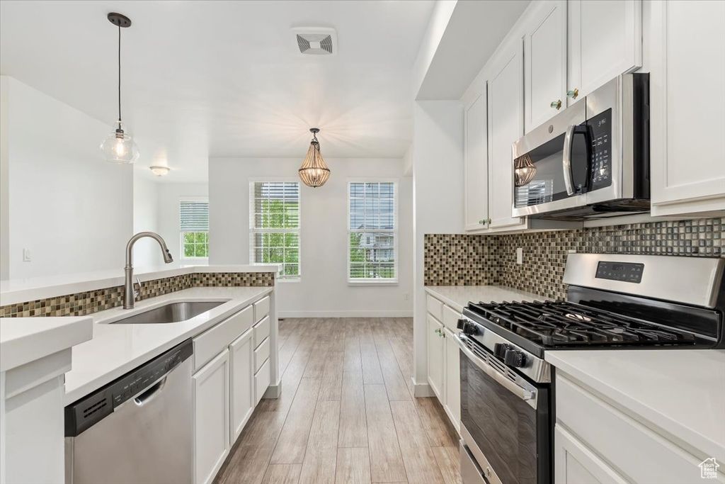 Come see this stunning townhome in the heart of Daybreak, with fenced in yard, open layout, beautiful kitchen, flex space, balcony views, and spacious suites. Near parks, schools, shops, and trails. Enjoy community pools, courts, and more. This town is a must see and won't last long!