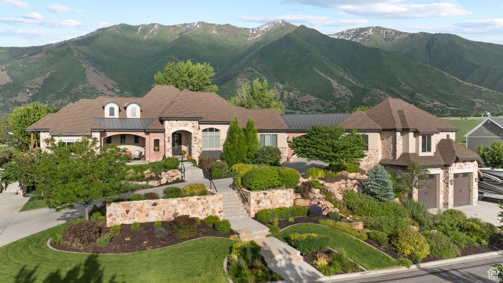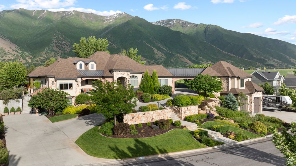 Get ready to be DAZZLED! Let's start with VIEWS! Maple Mountain AND the VALLEY! One of a kind 'VILLA' oozing with charm and style! There are sooo many details. There is something for everyone in this gorgeous estate. The pictures look stellar, but wait til you see it in person! Stunning foyer, kitchen and great room. Huge walk-in pantry. Primary bedroom has his/hers closets and you feel as if you are sequestered into your little peaceful haven when you retire here. Ensuite by back main entrance...so easy access for guests or kids. Office with outside entrance with playroom for the kiddos while you work from home. Great storage! KIVA for the movies! with kitchenette. Workout room! Tall ceilings. *** 9--count them--9 car/boat/rv garages.*** There is no shortage of parking. The driveway makes a statement and makes accessibility very easy. Lower garage in detached is 4 tandem. Another detached garage is massively oversized with a temp controlled hunting room/workshop. The backyard boasts a beautiful fire pit, coy pond with lilies, garden boxes, covered patio, open patio, tramp, and more. 3D TOUR: https://my.matterport.com/show/?m=W8LfZEqroKE VIDEO: https://player.vimeo.com/video/1090094611?byline=0&title=0&owner=0&name=0&logos=0&profile=0&profilepicture=0&vimeologo=0&portrait=0