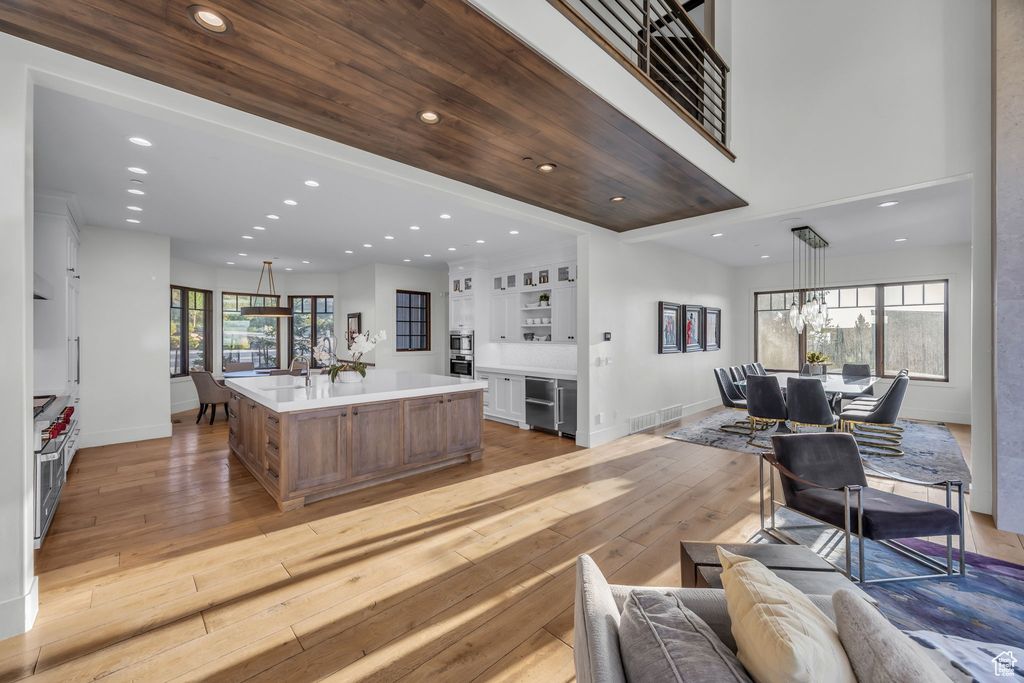 Welcome to one of Utah's most extraordinary private estates, set within the prestigious gated community of Summit Creek in Woodland Hills. Designed by renowned architect Kevin Price through the vision of Real Estate YouTube star Kris Krohn, this masterpiece was created to exceed expectations with limitless potential. The compound is thoughtfully composed of two distinct wings that together offer an unparalleled living and entertaining experience. The 8,500-square-foot private family wing is a stunning retreat in itself, featuring five bedrooms, a gourmet kitchen, a spectacular great room with double-story glass walls framing panoramic mountain vistas, an elegant office, and refined living spaces. This wing also includes a 3-car garage for daily convenience. The recently completed 20,000-square-foot addition is where the estate transcends anything else on the market. Conceived as a place where imagination becomes reality, this wing delivers an almost cinematic level of luxury and flexibility. At its heart is a show-stopping indoor pool with a world-class hydraulic floor system that transforms into a grand ballroom-an engineering marvel inspired by The O Theater at the Bellagio in Las Vegas. An ultra-luxury spa retreat offers a dry sauna, steam room, massage room, float room, and more, creating a true wellness destination at home. The addition also includes a true executive office suite and separate conference room, ready to host everything from corporate meetings to creative collaborations, along with a dedicated racquetball space for sport and recreation, and large chef's kitchen for entertaining. Throughout the space, stunning galleries and walls are designed to showcase art, crystal collections, or installations, giving it the feel of a private museum. For car enthusiasts, a sprawling display garage accommodates 13 cars, complete with lounge areas and elevated presentation platforms perfect for collectors or those seeking to impress. Additional unfinished space offers the opportunity to build the ultimate gym, including a professional-grade triple-story climbing wall. This estate is designed to suit a visionary buyer-whether it becomes an extended family compound, a corporate retreat, an entertainer's dream, or the ultimate venue for any celebrity to host podcasts, productions, and events on an epic scale. Beyond the property itself, Summit Creek offers Utah County's premier gated mountain living, with amenities that include pickleball courts, a state-of-the-art fitness center, an outdoor pool facility with breathtaking mountain scenery, a community clubhouse, and an extensive network of private trails and open space. Residents enjoy excellent access to everything that makes Utah special, with a short drive to Provo Airport, world-class skiing at Sundance Resort, top-tier medical facilities, shopping, dining, and endless outdoor recreation. This is not just a home, it is a private kingdom of possibility.