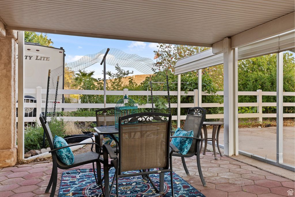 Spacious, Commercial-Zoned, and Solar-Powered-Right in the Heart of Hurricane This centrally located Hurricane property offers flexibility, functionality, and energy efficiency. The main level features three bedrooms, two bathrooms, and a bright, open layout filled with natural light. The kitchen is equipped with granite countertops, convenient rollout drawers, and two oversized walk-in pantries-ideal for staying organized and stocked. Thoughtful "age-in-place" elements, including wide doorways and a zero-threshold walk-in shower, make this home a smart choice for long-term living or investment. A covered deck extends your living space while offering scenic views. Downstairs, the walk-out basement includes a full second kitchen, an additional bedroom and bathroom, and a private entrance with a covered patio-ideal for multigenerational living, guests, or rental income. The apartment-style layout also features two more walk-in pantries, a walk-in closet, and a dedicated coat and linen closet, providing abundant storage throughout. Additional highlights include an oversized two-car garage with built-in storage, a circular porte-cochre-style driveway for easy access, and a secondary paved drive leading to a covered RV port in the backyard. The property is partially fenced and includes a huge walk-in storage space that truly must be seen to be appreciated.