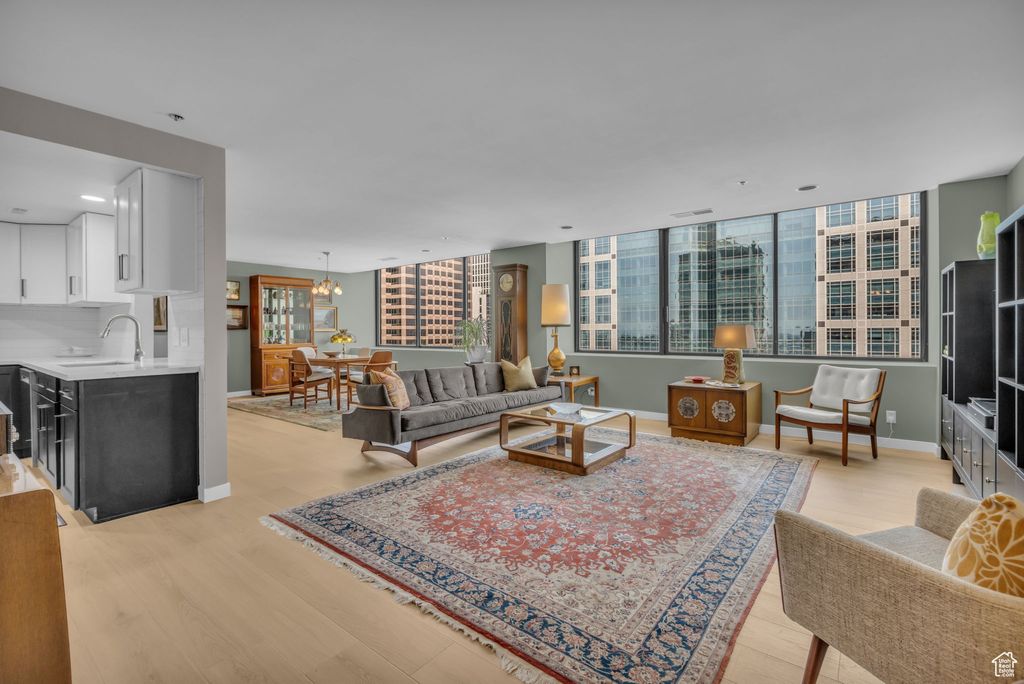 This house comes with a REDUCED RATE as low as 5.625% (APR 5.889%) as of 10/21/2025 through List & Lock. This is a seller paid rate-buydown that reduces the buyer's interest rate and monthly payment. Terms apply, see disclosures for more information. Custom remodel showcases this 16th floor corner condo. Optimal location in the south tower allows for spectacular city, mountain, & valley views. Spacious new kitchen was designed with sleek lines & bold colors. Primary suite is currently used as a sitting/study room with ridiculously inspirational views. It has an attached 3/4 bath with updated fixtures & lighting. Full bathroom updated with fresh fixtures & lighting as well. Second bedroom is being used as an owners retreat, has a large & updated walk-in closet. High end custom shades adorn the expansive windows throughout this home. Karastan BelleLuxe Laminated Wood Flooring throughout & is waterproof! Washer, dryer, & all new kitchen appliances included. Ideal city living just steps from Main St. offers walkability & the ease of Trax and bus system. American Towers has recently updated many amenities. Facial recognition entrance with 24-hour onsite security staff & underground parking space w/ room for storage, bike storage and a car wash! New indoor swimming pool and elevators. Amenities include sauna, racquetball court, gym, billiards room, library, clubhouse w/ full kitchen to hold parties, rooftop hot tub, barbecue grills, patio lounging and endless views.