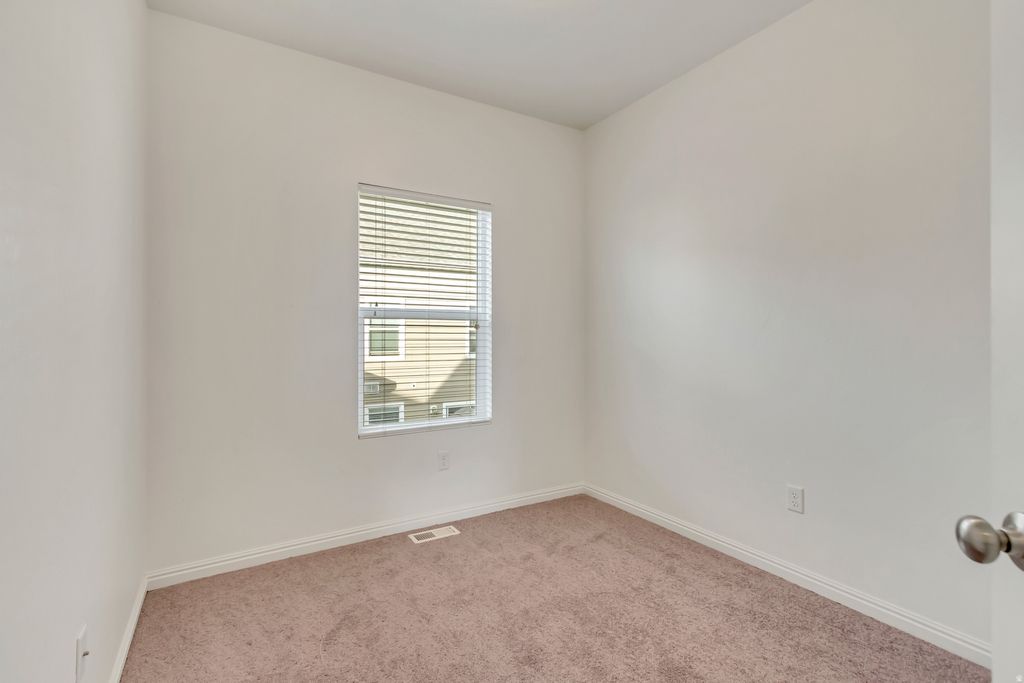 NEW FLOORING THROUGHOUT! This charming end-row townhouse offers a bright, open floor plan with high ceilings and matching countertops for a cohesive, modern look. The main level includes a convenient half bath and a spacious kitchen featuring a gas stove, granite countertops, and a built-in dining bench seating with storage. Upstairs, the extensive primary suite includes an ensuite bathroom, a ceiling fan, and an impressive walk-in closet. Two additional bedrooms, a full bathroom, and a laundry area with a stackable washer and dryer complete the upper level. Fresh interior paint makes the home feel move-in ready. Enjoy your own private patio and small gated outdoor space, plus a built-in shed for extra storage. Located in a secure gated community with a playground and convenient access to the freeway and TRAX, this home delivers both comfort and convenience. Don't miss your opportunity to make this fantastic townhouse your new home! Square footage figures are provided as a courtesy estimate only. Buyer is advised to obtain an independent measurement.