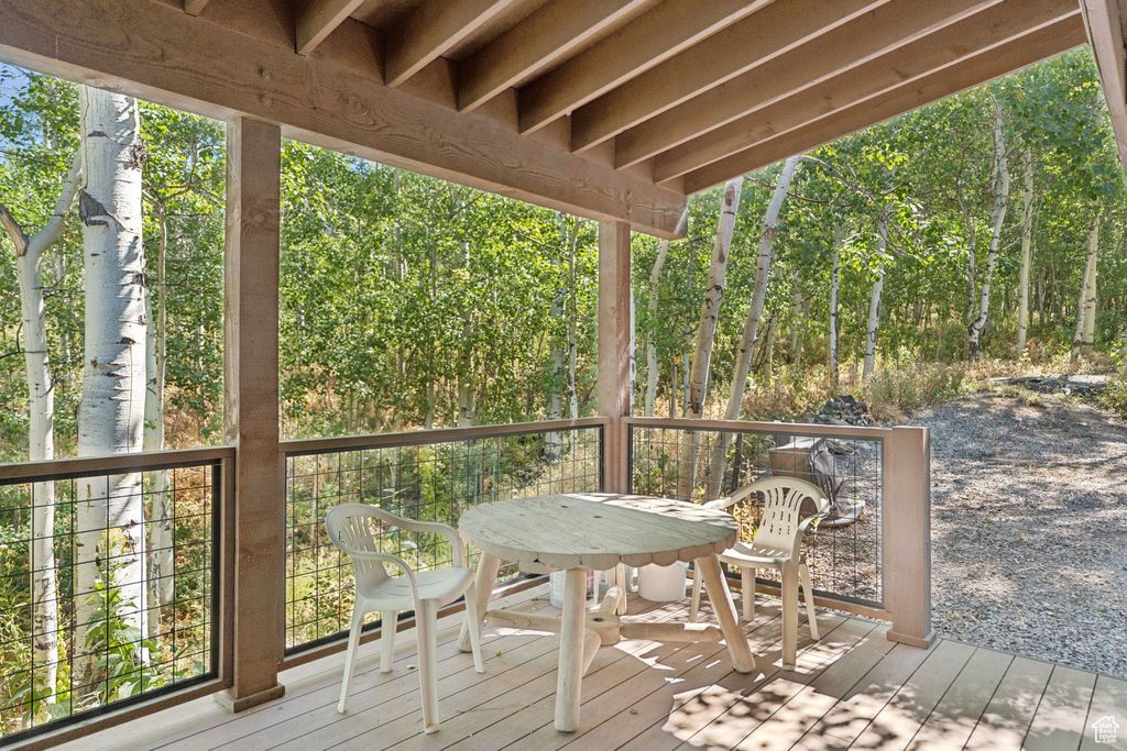 Escape the city heat! Lives large, especially in the summer with delightful, covered wrap-around TREX deck overlooking the leafy green aspen forest. Listen to the birds and watch the deer. (No need to shovel the decks in the winter--they're covered.) Both bedrooms have 2 sets of bunks. (Or swap out the bunks in one of the bedrooms and put in a Queen/single bunk combo.) The living area has oodles of seating options and a flat screen TV. Instant hot RINNAI water heater means no cold showers! With addition or a short ramp, this cabin could be handicap accessible. Goldilocks would approve.
