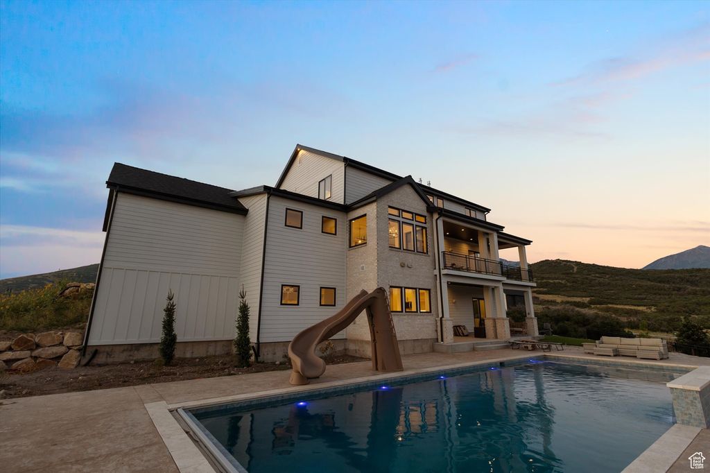 Perched high in the mountains at the end of a peaceful cul-de-sac, this extraordinary estate offers over 7,000 square feet of refined luxury, panoramic mountain views, and unmatched privacy. Thoughtfully designed for both grand entertaining and everyday comfort, this home blends natural beauty with world-class amenities. From the moment you arrive, the heated driveway welcomes you to a home that's truly above it all-literally and figuratively. Enjoy cleaner air above the inversion and unobstructed views from nearly every room. Step inside to an open and functional floor plan with soaring ceilings, expansive living spaces, and seamless indoor-outdoor flow to multiple decks and patios. The chef's kitchen is a culinary dream, featuring top-of-the-line Wolf and Sub-Zero appliances, a Cove dishwasher, a large scullery, and even a Scotsman crushed ice maker built into the island. Host with ease thanks to multiple fireplaces, a walkout lower level that feels like a main floor, and a full second kitchen downstairs-perfect for large gatherings or multigenerational living. Retreat to the elegant primary suite with a cozy fireplace, spa-like bath with a soaking tub and oversized shower, and direct access to the covered deck-where you'll feel like you're in Vail or Park City. A washer/dryer in the primary closet adds unmatched convenience. Enjoy resort-style living with an in-ground Olympic-sized pool and expansive patio-perfect for swimming, sunbathing, and hosting large gatherings against a breathtaking mountain backdrop. With high-speed quantum fiber installed, it's ideal for remote work or streaming. Other features include a private gym, a theater room, a roughed in golf simulator, and it is located next to a mountain trailhead for hiking and biking. There is ample storage throughout, and with a half-acre lot offering both seclusion and space-this is mountain living at its finest.