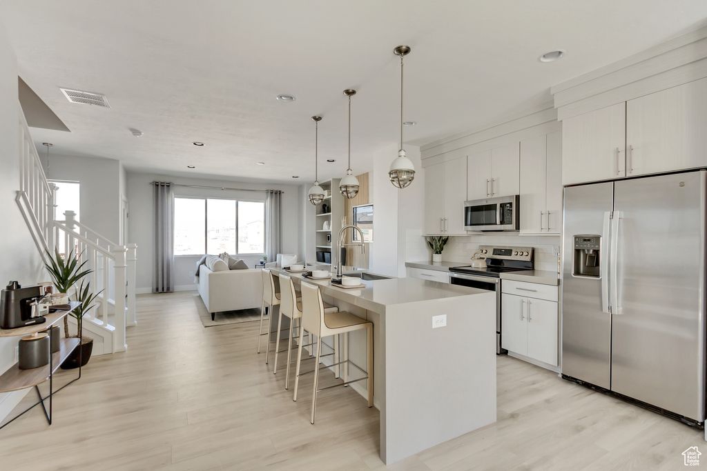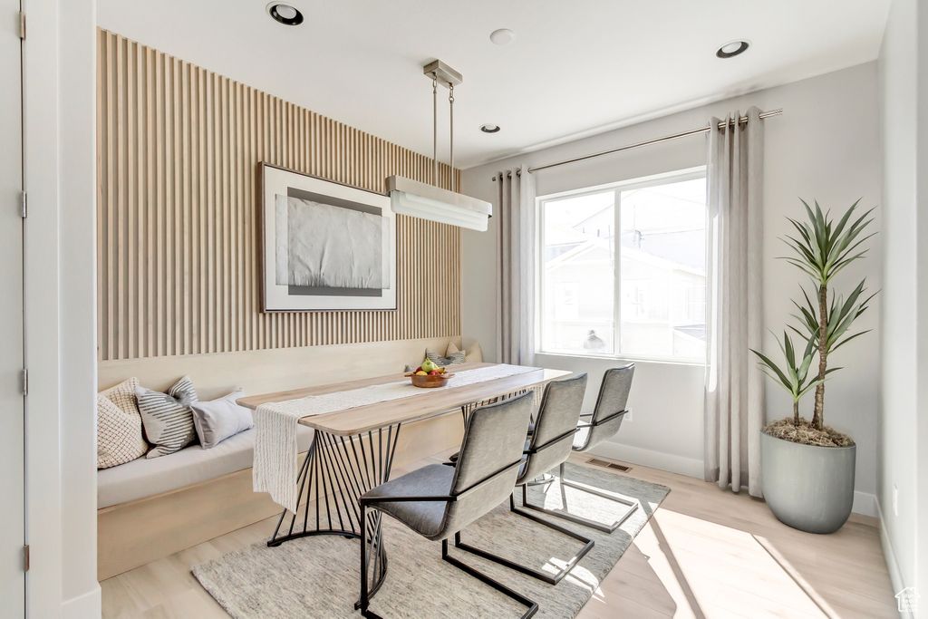 WELCOME HOME! Nestle into your brand new 4 bedroom townhome in a prime location tucked away from busy streets, but still close to everything you need. The Hillsborough from Woodside Homes features a guest room and full bath on the first floor, spacious and open second floor with 9' ceilings, den/craft room off the dining nook. Professionally designed finishes include White and Dusty blue cabinetry, white quartz tops, waterproof wood laminate, White open railing throughout for extra spaciousness. Primary suite features TWO walk in closets, dual sinks in the bathroom, oversized shower. This home is under construction/will be completed early DEC. Call/Text to see this home, or others from our Move in Ready Collection. Visit the decorated models located at 853 W 560 S. Ask about our preferred lender incentives. # 409 Hillsborough ** Photos are of decorated model home. colors/upgrades/finishes will vary**