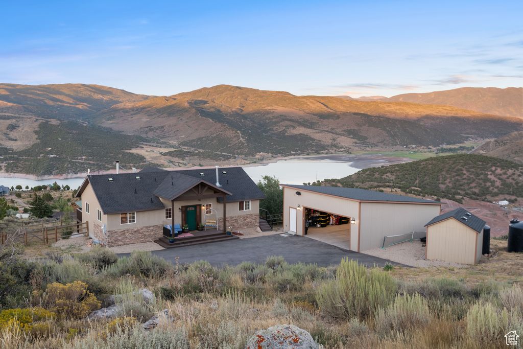 This beautifully updated rambler (with an office or optional 4th bedroom) in Rockport Estates offers the perfect balance of comfort, style, and breathtaking views. Perched on a 1-acre lot, the home features a spacious deck overlooking the Rockport State Park with the mountains as your backdrop-an ideal setting for year-round sunrises and alpenglow evenings. Inside, you'll find two gas fireplaces, including one in the primary suite, a wood burning stove, two living rooms, a chef-inspired kitchen with stainless steel appliances, granite countertops, and custom cabinetry, plus a walkout basement leading to a fully fenced yard. New paint and carpets throughout. The newly built oversized garage, paved driveway and expanded water storage tank system add peace of mind and functionality. Perfect as a primary residence or vacation getaway, this property is just minutes from I-80 and world-class skiing in Park City. In the summer, enjoy boating, fishing, and water activities on the reservoir, and in the winter, take advantage of nearby ski resorts. Additional views stretch across the valley to Coalville and Oakley, adding even more charm to this remarkable home.