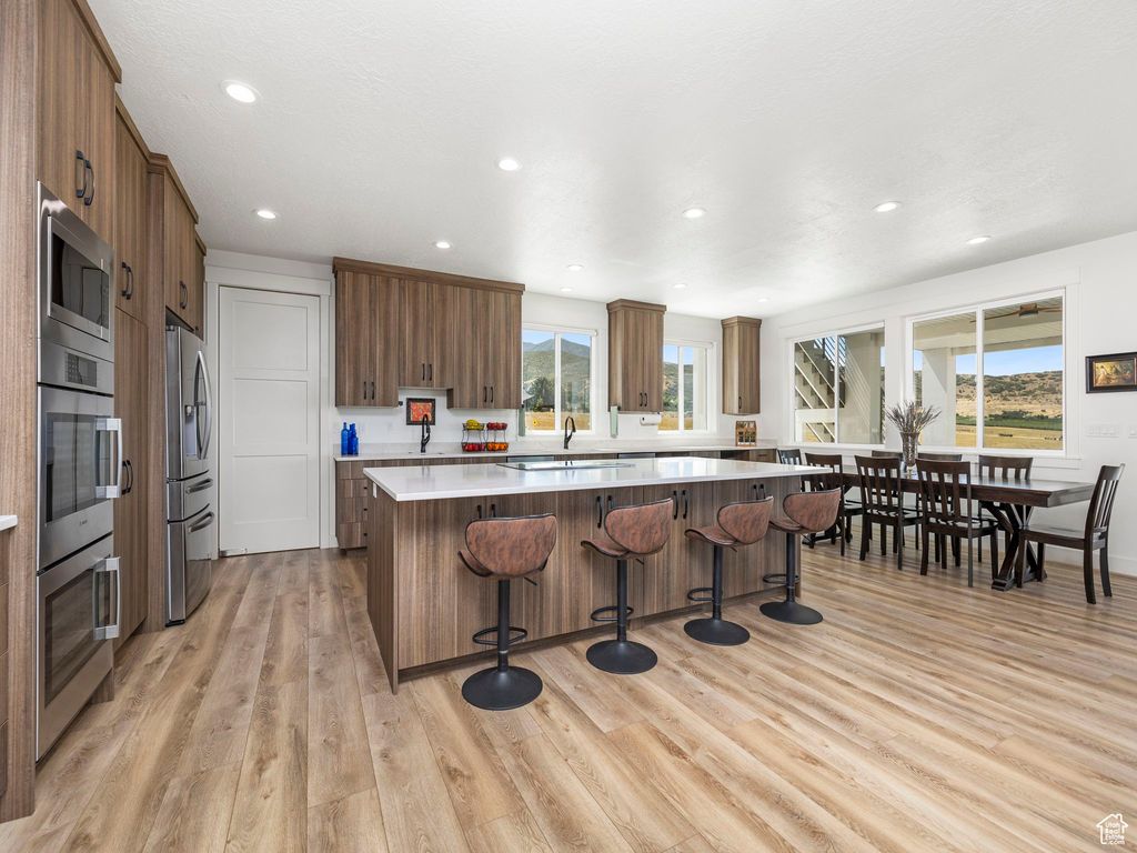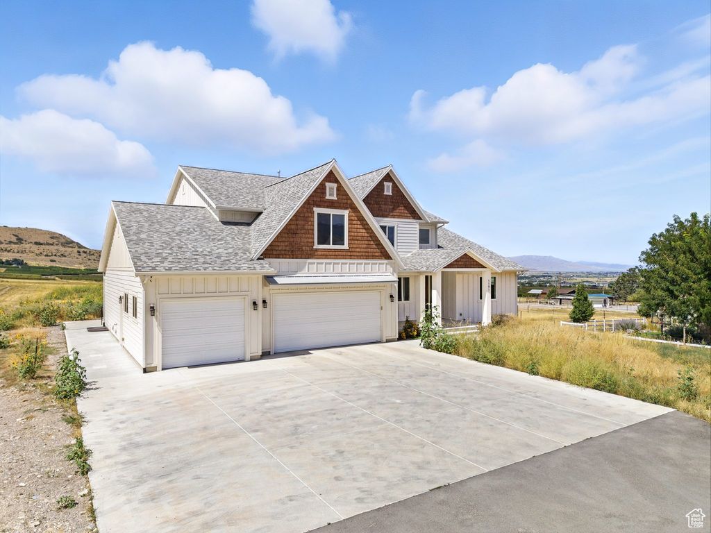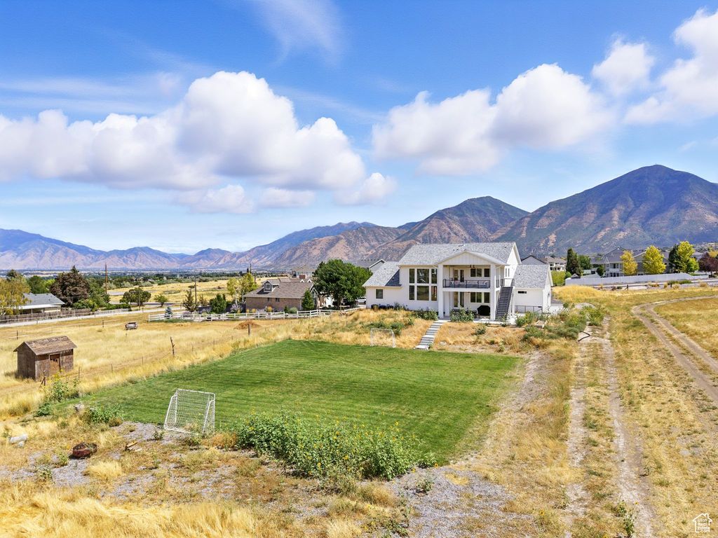 Be sure to click "Tour" for a 3d home walk through! From the moment you arrive, this home greets you with quiet privacy, set 150 feet back from the road, where peaceful surroundings and expansive mountain, valley, and lake views stretch out in every direction. Step through the wide entry and into soaring 19-foot ceilings in the living room, where walls of windows flood the space with natural light and frame sunsets that will take your breath away. The open floor plan connects everything together-the kitchen, dining, and living area flow seamlessly so you're always part of the conversation. At the heart of it all is the largest quartz island possible from a single slab-over ten feet long and five feet wide-designed for gathering, cooking, and creating memories. The island houses your Bosch induction cooktop and a Zephyr motorized downdraft for the stove that disappears seamlessly into the counter when not in use. Surrounding it, high-end Bosch convection ovens with side-opening doors, a microwave in the kitchen and another in the pantry, and two stainless steel KitchenAid dishwashers that actually clean your dishes make every meal effortless. Custom Italian TSV cabinetry, a massive walk-through pantry with extensive custom shelving, and space for two fridges, a chest freezer, and even a direct garage entry for bringing in groceries with ease mean the kitchen is as functional as it is stunning. On the main level, your 17' x 39' owner's suite is more than a retreat-it's a sanctuary. With its own sitting area, oversized shower, soaking tub, and attached 17' x 13' office, your days begin and end with comfort and sweeping views of the entire valley, Utah Lake, and the mountains-scenes that few ever get to call their own. Upstairs, your 850-square-foot loft overlooks the family room below and opens to a second-level covered deck with ceiling fans-the perfect perch to take in the valley views. Every detail is designed for living well. Extra-wide stairs designed for comfort, flow, and ease of living, smart blinds that respond to Alexa or Google, energy-efficient LED lighting, and a whole-house fan that cuts cooling costs by up to 90%. The laundry room takes convenience further with custom cabinetry, quartz countertops, laundry basket stations, and raised bases for the washer and dryer. Step outside to to the covered front porch, or gather on your expansive covered back patio with ceiling fans and space for grilling and dining. From there, stairs lead down to your private 90' x 90' grass field-big enough for soccer games (complete with an outdoor drinking fountain), reunions with friends, watching an outdoor movie, or simply enjoying the sunset by a fire with your loved ones. With a separate two-bedroom apartment complete with its own full kitchen and laundry-perfect for multigenerational living or income potential, massive parking, a mudroom designed for everyday life, 400-amp electrical service and 2 lb. gas service provide ample capacity for you to add a pool, spa, gas-heated workshop, additional HVAC, and any upgrade you envision, and one of the quietest, most serene settings in the county, your home is more than a place to live-it's where life expands. (Please note that 2 of the 5 bedrooms, and a full bathroom are in the accessory apartment which is not pictured on the 3d Tour)