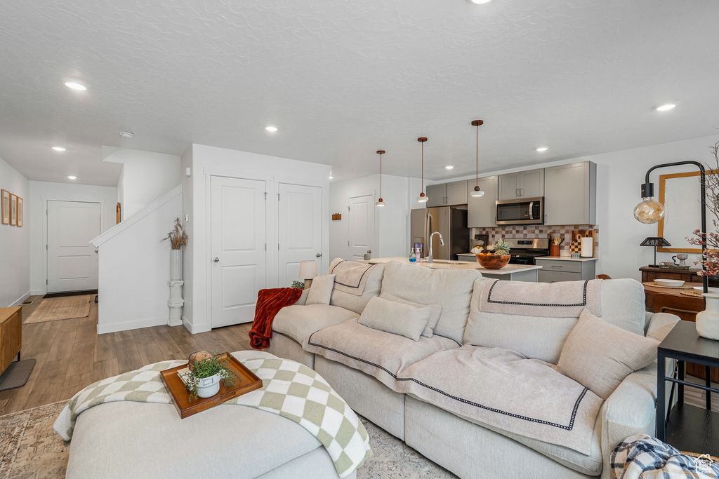 Welcome to this beautiful D.R. Horton townhome in Little Valley Gateway, Magna, built in 2023 and lived in by just one owner. With its gently lived-in condition, this home still feels fresh, bright, and brand new-perfect for your next chapter. The open-concept layout is designed for both style and function, showcasing a modern kitchen with stainless steel appliances, and a spacious island. Seamless transitions connect the kitchen, dining, and living spaces, enhanced by soaring ceilings and expansive windows that flood the home with natural light. Enjoy a two-car garage, private backyard space, and access to scenic mountain views from the community. With close proximity to shopping, dining, and major roadways, this home combines contemporary elegance with everyday convenience-a rare opportunity to own a townhome that feels brand new without the wait.