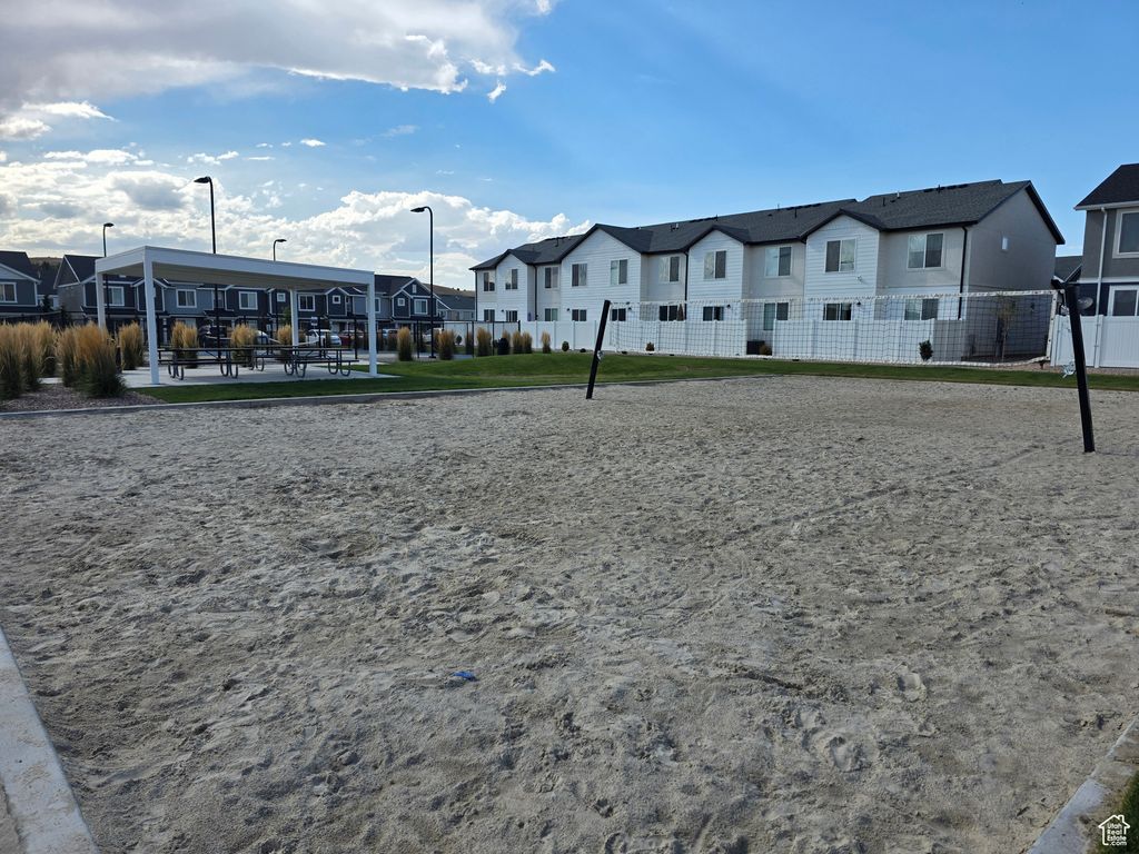 Beautiful 3-bed, 2-bath townhouse in a vibrant community featuring a pool, pickleball and volleyball courts, playgrounds and picnic areas. The home includes a modern kitchen with quartz countertops, walk-in pantry and stainless steel appliances, plus a spacious primary suite with walk-in closet and a full-size upstairs laundry. The walls between units are well insulated and according to owners they can not hear their neighbors. There is conveniently a water spicket located within the garage. Located near I-15 with stunning mountain view. This is a must see home.
