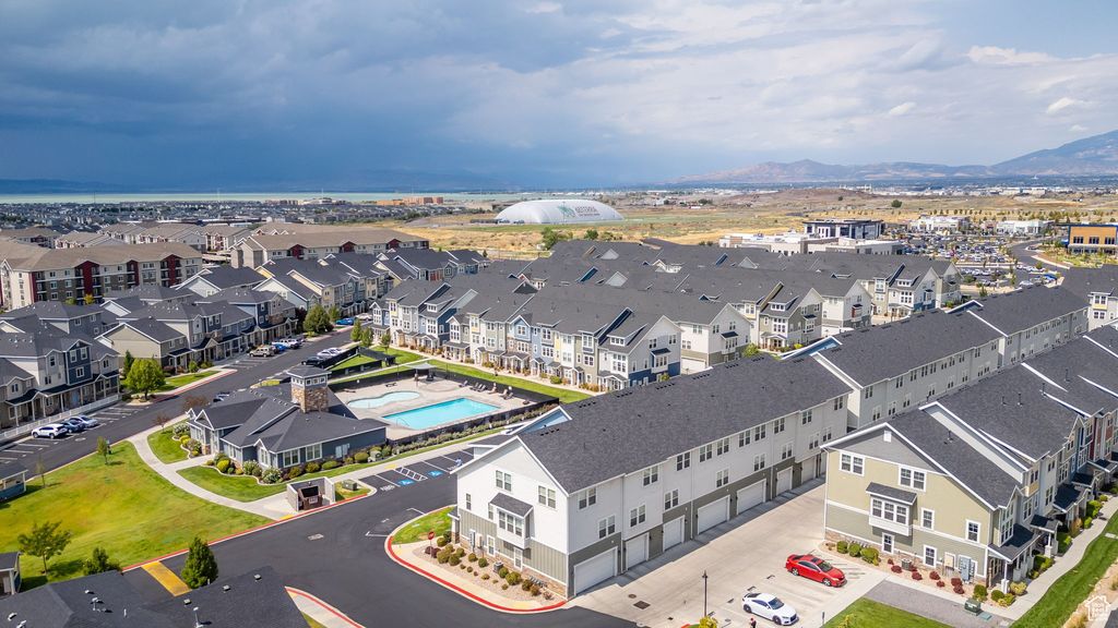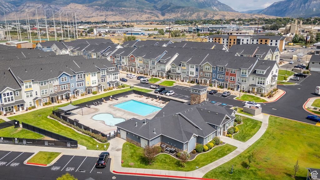 Discover this meticulously maintained 3-bedroom, 3-bath townhome in the vibrant Edgewater in Vineyard! Built in 2017, this 1,844 sq ft A-frame-style home boasts fresh carpet and bright, versatile living spaces across three levels. The open-concept second floor features a sleek modern kitchen, spacious dining area, and a large family room, perfect for entertaining or unwinding. Upstairs, find two generously sized bedrooms, including a primary suite and a secondary ensuite with a private bathroom and walk-in closet. A third bedroom and additional bathroom on the second level offer extra flexibility. Enjoy premium features like full landscaping, central air, granite countertops, a 1-car garage, and an additional parking space (with an optional third space available). The HOA, at $275/month, provides access to a clubhouse, gym, pool, tennis courts, playground, on-site management, and more. Nestled in the top-rated Alpine School District, this home is steps from parks, shopping, dining, Top Golf, Mega Plex Theaters, and easy freeway access. Marvel at breathtaking mountain views from this prime location, adding serenity to your daily life. Move-in ready and located in a thriving community, this townhome is your perfect opportunity to own in Vineyard! Square footage figures are provided as courtesy estimates only and were obtained from county records. Buyer is advised to obtain an independent measurement.