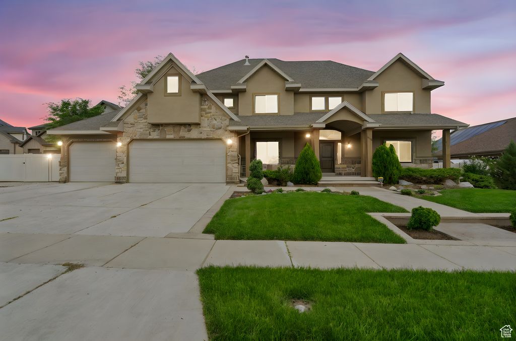 No backdoor neighbor and no HOA. Million-dollar living for under a million dollars. This Bluffdale beauty offers grand design, modern comfort, and income potential-all on a spacious lot with fresh landscaping that feels open and inviting. Step inside to a dramatic entry with soaring ceilings, a sweeping staircase, and lattice wood-and-tile flooring. 5BR/4BA span over 5,500 sq. ft, highlighted by a luxurious primary suite with a private deck, spacious bathroom, and walk-in closet. Additional bedrooms include a junior suite with its own bath, two Jack-and-Jill bedrooms, and a main-floor guest room with adjacent bathroom. The open great room flows seamlessly to the kitchen, with a bonus room opening to a second deck. The daylight walk-out basement is already insulated and framed for a full ADU with kitchen, family room, 2 bedrooms, bathroom, and separate storage and cold storage rooms. A large yard with secondary water, RV parking, an ADU-ready basement, and no back neighbor make this an exceptional Bluffdale find. With interest rates trending down, now is the time to get ahead of the rush-this home checks all the boxes for space, design, and value.. Square footage figures are provided as a courtesy estimate only. Buyer/Broker is advised to verify all.