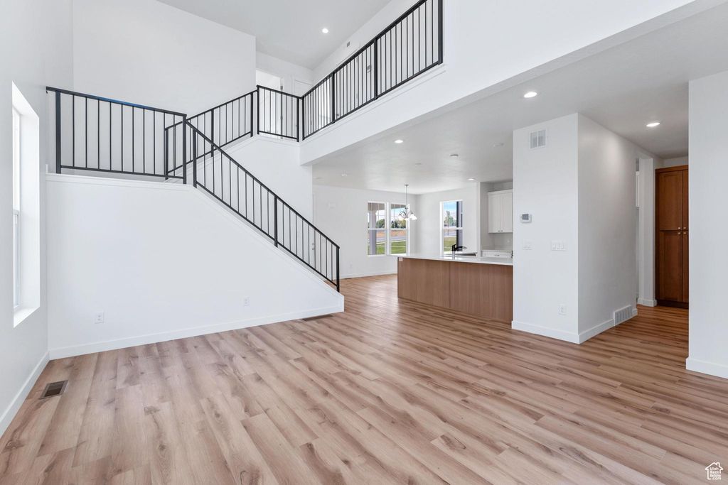 Beautiful, brand new home, in this desirable community in West Jordan. MASSIVE HOLIDAY INCENTIVE ON THIS HOME IF CLOSED BEFORE JAN 1st! This South facing home boasts stunning unobstructed views of the Valley and Wasatch Mountains. You will especially love the views from the large covered front porch, den/office, and master bedroom. The 18 foot ceilings in the family room and amble natural light provide the wow factor. The kitchen is loaded with upgraded appliances, Quartz countertops, Cabinet vent hood, custom built in Cabinet pantry, and cabinet hardware. Enjoy 3 bedrooms, 2.5 baths, plus a den, 18 foot ceilings in the family room, an oversized garage, and room for 2 more bedrooms a bathroom and living room in the unfinished basement. You can also enjoy extra privacy with no homes build directly across the street.