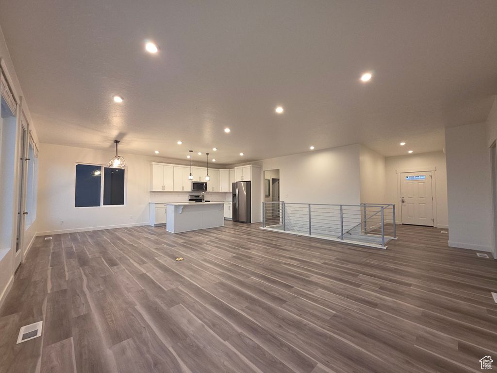Price Reduced $16,000. NOW ONLY $699,000!! With outstandings valley and mountain views, this stunning 5-bedroom, 3 bath rambler has a fantastic open floor plan. Built in 2021, it features a complimentary and open floor design with a formal entry, large great room with a stunning wall of view windows giving you an amazing view of the valley from just about anywhere in the area and flooding the room lots of natural light. The kitchen boasts lots of quartz counter-top space, center island, gas range, fridge, and dining area with views. 3 for the 5 bedrooms located on the main floor including the owner's suite with its double basin vanity, 6-foot shower and walk-in closet. There is a laundry located on the main floor as well. Off the back you will find a large deck with a hot tub, natural gas BBQ and patio furniture (all included in the sale for your use and enjoyment). The basement is fully finished and can be accessed from both inside the home as well as from the outside basement entry. It too, features valley views from the windows and covered patio area. The basement features 2 bedrooms, a full bath, a full second kitchen with electric range, DW, fridge, etc., and 2nd full laundry. In the 2-car garage you will notice the EV charging station along with the mezzanine storage area. In addition to the hot tub, BBQ and patio furniture, the owner is leaving both fridges, both sets of Washer/Dryers. The home is serviced by two separate HVAC units, a water softener and filtration unit and an on-demand water heater. Square footage figures are provided as a courtesy estimate only and were obtained from Utah County records. Buyer is advised to obtain an independent measurement.