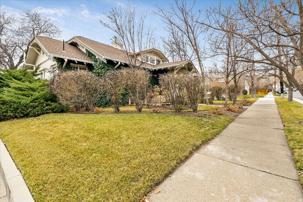 Listed on the historic registry as the Geo A. Holt House, this remarkable Federal Heights/Avenues residence blends timeless character with exceptional livability. Set in one of Salt Lake City's premier neighborhoods, the home is surrounded by tree lined streets, historic charm, and a sense of community that is truly special. HGTV House Hunters International even expressed interest in featuring it. The property offers the finest in indoor and outdoor living. A serene backyard oasis welcomes you with a luxurious covered patio, an inviting fireplace, and built in seating with thoughtful storage. This private retreat provides shade and comfort through the summer months and warm fires through the winter, making it a place to gather and linger year round. Mature landscaping envelops the home and the neighborhood, offering changing leaves, blossoms, and a sense of natural beauty from every window. A finished climate controlled flex space adds impressive versatility and can serve as an office, studio, gym, or creative workspace, with the option for an easy conversion back to a one car garage if desired. The daylight basement is bright and open, and along with the whole house, is bathed in natural light from morning sun on the east side to glowing sunsets on the west. Throughout, the home feels warm and welcoming, carrying more than a century of history and love in its walls. Amazing location with nearby parks and trails, an easy walk to events at the University of Utah, and the restaurants and energy of downtown just minutes away. Salt Lake City's International Airport is only a short drive away. Convenience and charm meet here in perfect balance. Recent improvements include a new main water line, remodeled upstairs bathroom, custom closets, remodeled kitchen with porcelain countertops, brick floors, and new appliances, a whole house water filter, newer fencing, newer water heater, and newer high efficiency furnaces and AC units. SF per county, buyer to verify all. Link to video tour: https://youtu.be/ftktd0SrI-s