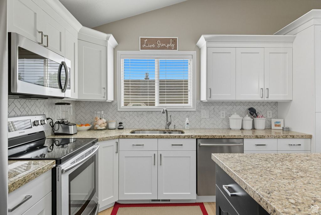 INTERIOR | Granite Counters, Master Downstairs, Vaulted Ceiling(s), Walk-In Closet(s) |