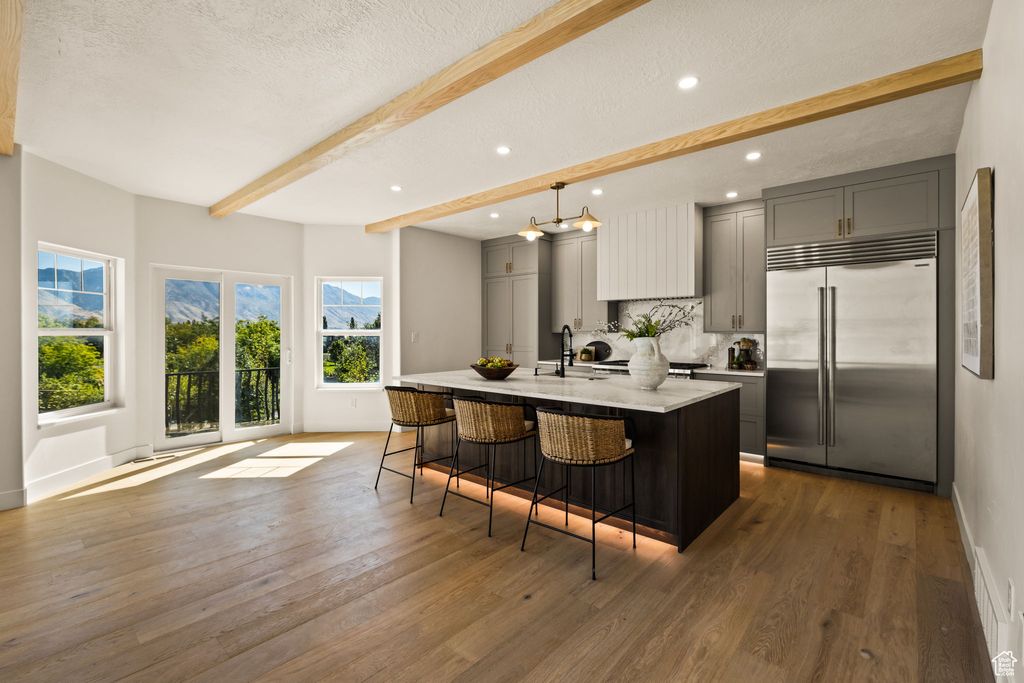 Experience luxury living at its finest in this newly finished Highland estate, perfectly situated on a generous .60-acre lot with breathtaking mountain views. This residence blends timeless design with modern amenities, offering both sophistication and comfort. Step inside to discover vaulted ceilings that fill the home with natural light, a stunning chef's kitchen featuring Sub-Zero and Wolf appliances, and a hidden butler's pantry for seamless entertaining and storage. The primary suite is a true retreat with heated floors in the spa-inspired bathroom, providing comfort year-round. Wellness and recreation are at the heart of this home with a dedicated gym, yoga room, private sauna, invigorating steam shower, and breath taking cold plunge. The expansive lot offers ample space for gathering, play, and enjoying the serene Highland setting. Every detail-from the refined finishes to the thoughtful layout-has been designed for those who value elegance and lifestyle. Schedule your private tour today! Buyer and Buyer's agent to verify all information. Square footage figures are provided as a courtesy estimate only. Buyer is advised to obtain an independent measurement.