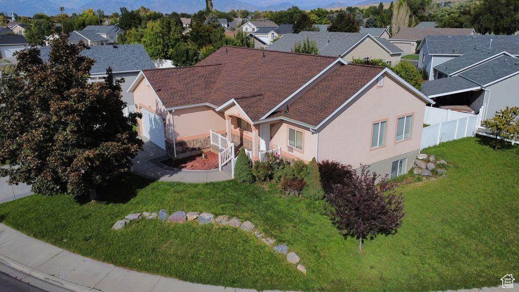 Lovely 6 bedroom home in beautiful Payson neighborhood. 3 bedrooms on the main floor, all with high ceilings. Master suite with walk in closet and updated master bath. Office/bedroom off the main entrance with hanging chandelier and built-in desk. Vaulted ceilings and large windows fill the open concept kitchen and living room with light. There are an additional 3 bedrooms downstairs plus a large workout/bonus room. A huge sunken stone window garden/well spans across the southern face of the home and allows generous light and a lovely view from the basement. AC and Furnace are only two years old and a new roof in March 2025! On a corner lot with a generous front yard and fully fenced backyard. 2 car garage.