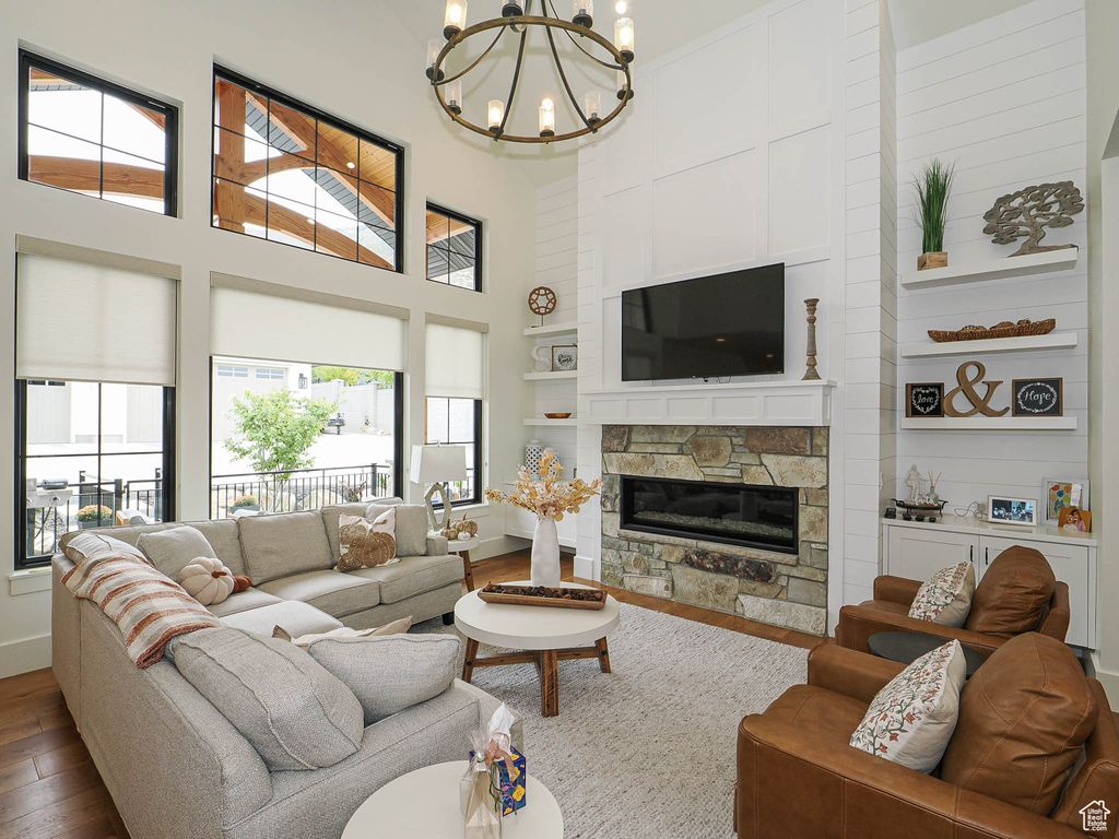Stunning mountain modern rambler on .78 acre. Incredible neighborhood with amazing mountain views. Loaded with many upgrades-Open Theatre room, 10' basement ceilings, exposed exterior timbers, Sonos throughout, Andersen windows, heated garages, exercise room with dry sauna, 4 acres of open space directly across the street. Detached garage with mother-in law apartment. Just under 900 sq. ft of living area and 1166 sq. ft. of garage. 7 car garage total with house and detached garage. Landscaping includes in- ground trampoline, 2 fire pits, Olympus concrete fencing, Trim lighting, professionally landscaped with mature trees. Buyer to verify all info.