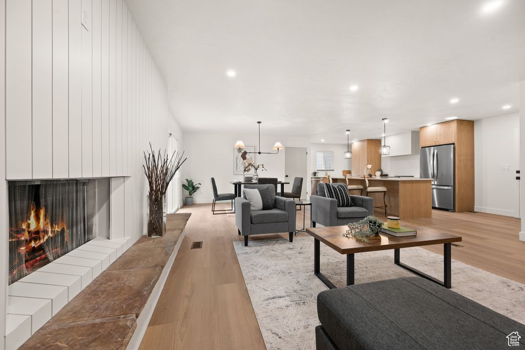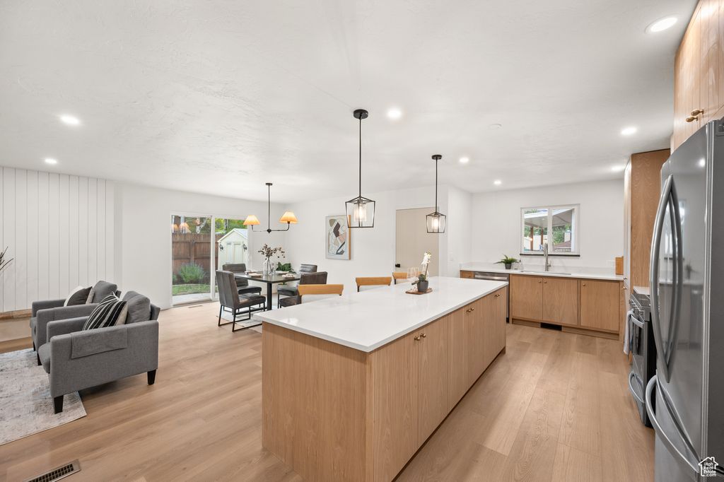 Stunning Sandy Remodel with Custom White Oak Kitchen & Basement Apartment! Located near Quail Hollow Park with quick access to both Big & Little Cottonwood Canyons and Fort Union shopping, this home delivers on location and luxury. Inside you'll find a custom white oak kitchen with high-end appliances, quartz counters, and sleek cabinetry, opening to a spacious great room perfect for dining and entertaining. The primary suite is a true retreat with a spa-inspired bath, walk-in closet, and convenient in-suite laundry. Downstairs, the fully renovated basement apartment adds flexibility for multigenerational living, guests, or rental income. Every detail showcases quality craftsmanship, with new white oak flooring, custom cabinets & vanities, tiled baths, designer lighting, and plush new carpet throughout. A thoughtful layout, modern finishes, and high-end upgrades make this home a rare Sandy find. Mother in Law, Separate Basement Entrance Square footage figures are provided as a courtesy estimate only and were obtained from county record. Buyer is advised to obtain an independent measurement.