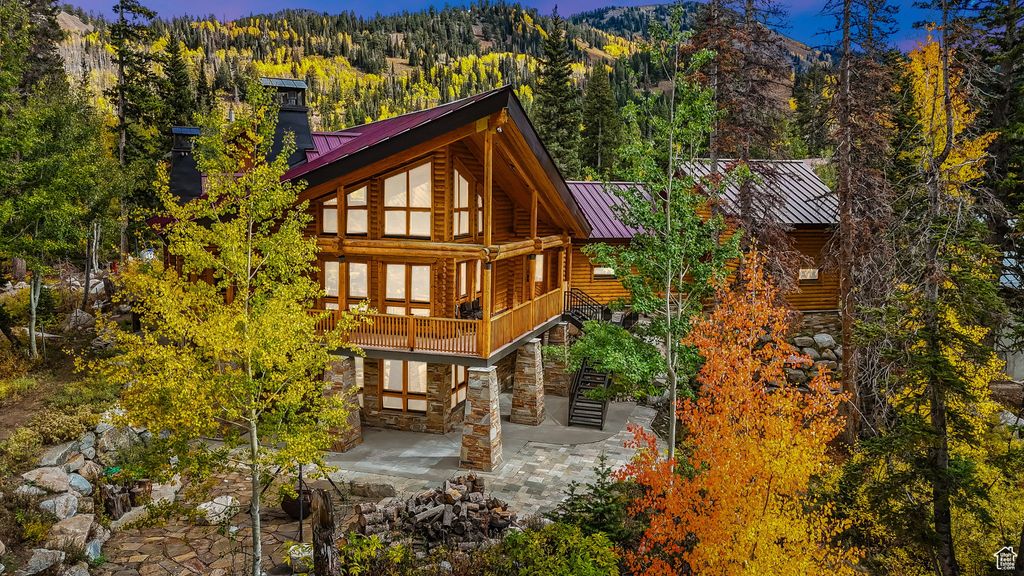 Welcome to this turn-key mountain retreat on the coveted Brighton Loop, offering breathtaking mountain and forest views. Enjoy year-round access on a large, low-maintenance lot with Cottonwood Creek, an outdoor spa hook-up, and a cozy raised fire pit for evenings under the stars. Close to Brighton Resort and Silver Lake for skiing, hiking, biking, and fishing. Inside, a vaulted great room with a dramatic rock fireplace anchors the home, joined by a chef's kitchen with Viking appliances & granite. The main-level primary suite features its own fireplace, steam shower, jetted tub, walk-in closet, and a fireplace in the main bath. Upstairs, a spacious loft with private deck offers stunning views. The walk-out lower level adds a second kitchen, recreation room with fireplace, sauna, and guest suites. Relax on the rear deck or use the heated 3+ car (1,100 sq ft) garage w/220V. Fire sprinklers, instant hot water, new roof & serviced boiler (2025), and zoned heating complete this rare find. Buyer to verify all MLS information including square footage and all details as part of their due diligence.