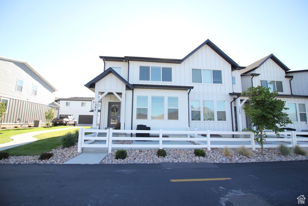 Your new townhome offers craftsman-style white cabinets and white quartz countertops, a spacious dining area, and a comfortable living room with beautiful views of the mountains. Upstairs is the owner's suite with bathroom, three more bedrooms, laundry room, and one additional full bathroom. Quiet area, close to new city recreation center and rodeo grounds. Square footage figures are provided as a courtesy estimate only and were obtained from county records. Buyer is advised to obtain an independent measurement.