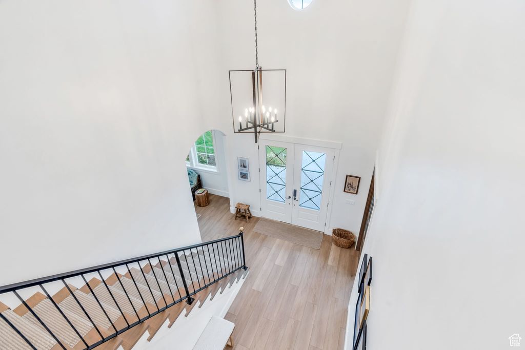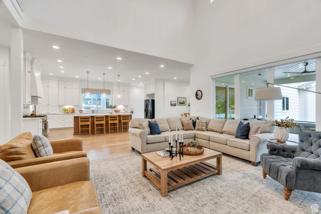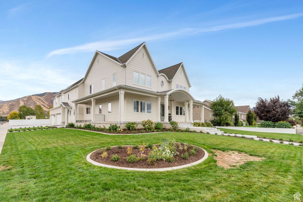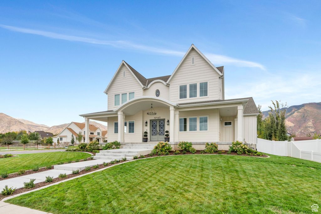 Welcome to this stunning custom-built home, completed in 2023 and set on .7 acres in the heart of Mapleton. Designed with an open floor plan, 10-foot ceilings, and a 20-foot great room, this home feels bright, spacious, and inviting. The kitchen is built for both everyday living and entertaining, featuring quarts countertops, a 48-inch Italian Ilve gas range, dual Bosch dishwashers, and a large butler's pantry with room for an extra oven or fridge. The bathrooms boast of beautiful finishes that include granite & marble countertops. A bonus studio space with its own entrance is prepped for a full kitchen-great for guests, an office, or a rental. The walkout basement has tall ceilings, finished framing, and ductwork, ready for your final touch. Bring your animals-chickens, horses, goats, and pigs are all allowed (just no cows). This property offers the best of modern comfort and country living in one of Mapleton's most peaceful settings.