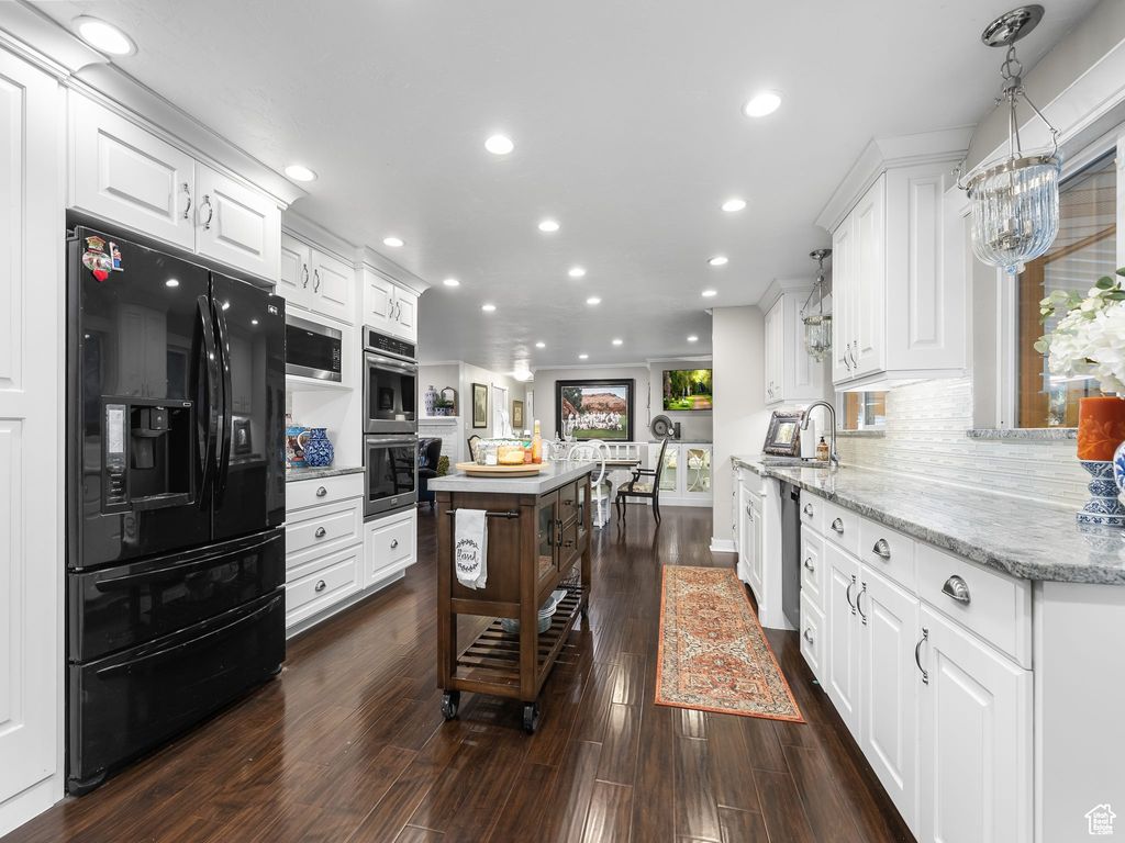APPLIANCES | Disposal, Double Oven, Gas Range, Microwave, Oven, Range, Range Hood, Refrigerator, Water Softener Owned |