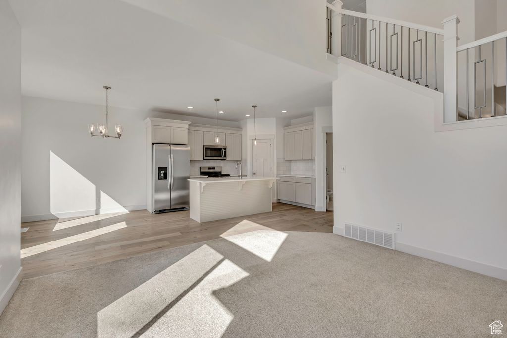 Step into this amazing townhome in Saratoga Springs' desirable Wildflower community where modern design meets thoughtful upgrades you won't find in new builds. This home features bright open spaces with soaring ceilings and large picture windows that frame unobstructed mountain and valley views. The kitchen showcases quartz countertops, designer lighting, stainless steel appliances, custom cabinetry, and tile backsplash with a timeless aesthetic. Upstairs, the spacious primary suite has a vaulted ceiling, en-suite bath and roll-down blinds-also featured in the living and dining areas for added comfort and privacy. Unlike nearby new construction, this home already includes valuable additions such as a premium water softener, 240V EV charging port in the garage, and window coverings throughout-making it truly move-in ready from day one. The walkout basement is a rare highlight, offering incredible potential for future living space and direct outdoor access. Enjoy the Wildflower lifestyle with miles of walking trails, pools, off-leash dog parks, playgrounds, a private community lake, pickleball/volleyball courts, and open space, all within minutes of local schools, shopping, and Utah Lake-offering the perfect blend of new-build freshness, convenience, and everyday livability.