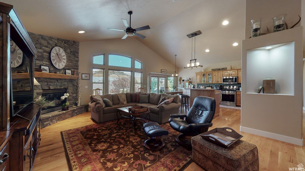 Showings begin at the open house on Saturday the 11th from 10:00-1:00 The perfect blend of timeless design and modern living offering breathtaking mountain views and no HOA. This pre-inspected home provides ultimate peace of mind. The main level captivates with an open-concept design, featuring soaring vaulted ceilings, gleaming oak hardwood floors, and a stunning stone fireplace. The gourmet kitchen is a chef's delight, boasting stainless steel appliances, a gas range, a large island, and seamless access to the covered deck where you can savor the incredible views. The main-floor primary suite offers a private sanctuary with an en-suite bath featuring a separate tub and shower. The fully finished walkout basement is an exceptional highlight, featuring a complete apartment with a second kitchen and a separate entrance-perfect for multi-generational living. This lower level also includes a cozy second family room with another gas fireplace, two additional bedrooms, and direct access to the covered patio. Step outside into your private, fully fenced backyard oasis on a quarter-acre lot, complete with a tranquil water feature and an included hot tub for year-round relaxation. Car and hobby enthusiasts will be thrilled with the oversized 3-car tandem garage with 220V power and a dedicated RV pad with 50-amp service. Upgrades include CAT-5 wiring throughout, a whole-home humidifier, and a water softener. Located just a short walk from The District, this home offers unparalleled convenience to shopping, dining, and entertainment. Don't miss this rare opportunity-schedule your showing today! If the square footage or acreage of the property or improvements is of material concern to the buyer, the buyer is responsible for verifying the square footage/acreage measurements and improvements to the buyer's satisfaction.