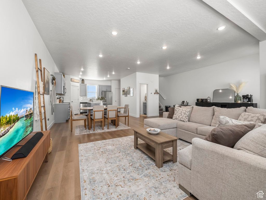 Welcome to this beautiful 3-bedroom, 2.5-bath townhome in The Towns at Brylee Farms! Built in 2024, this 2,555 sq ft home offers modern style and functionality in a thriving Eagle Mountain community. Enjoy an open floor plan with a spacious great room, large windows, and beautiful finishes throughout. The kitchen features quartz countertops, ample cabinetry, and included dishwasher, microwave, and stove. Curtain rods and curtains in the master and small bedroom are also included. The 4 car garage features a home gym, and the mounted mirrors may stay upon request. Upstairs includes a roomy primary suite with walk-in closet and private bath. The unfinished basement provides space to grow or customize. It is the perfect space to finish a mother in law apartment. Energy-efficient design with double-pane windows, central air, and forced-air heating. Community amenities include a clubhouse, pool, playground, picnic area, and pickleball and tennis courts. This home is a short sale and is subject to third party approval. Buyer to verify all information.