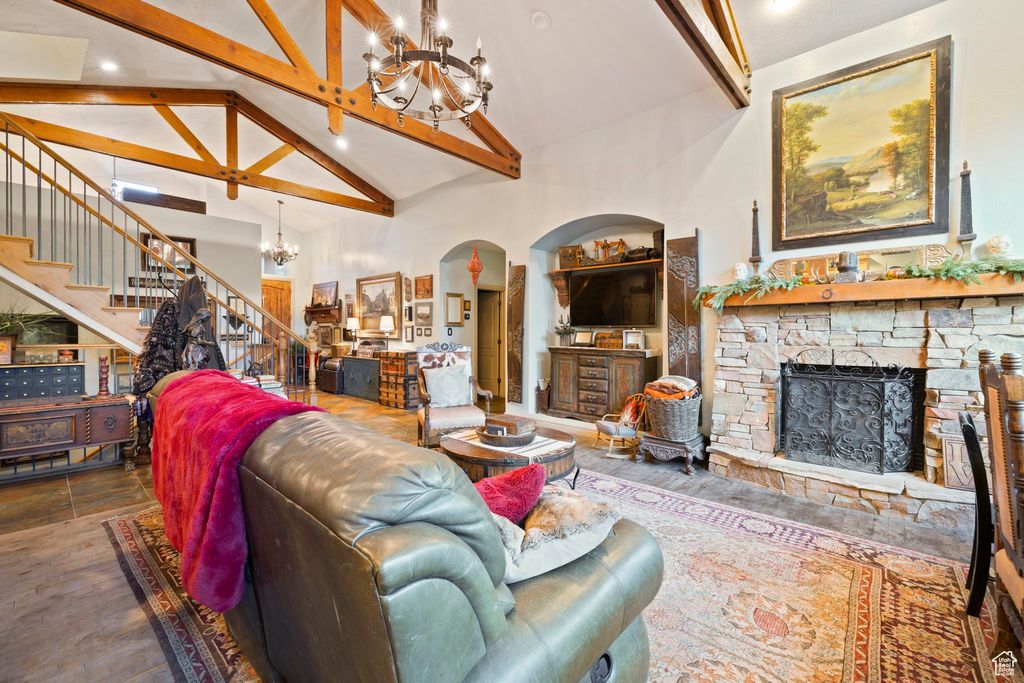 Welcome to this beautifully crafted custom home located in one of Alpine's most desirable neighborhoods. Nestled on a half-acre lot at the end of a peaceful cul-de-sac, this property offers nearly 5,000 sq. ft. of living space with thoughtful design and exceptional potential. The main level features a spacious great room, primary suite, and laundry, providing convenient main-floor living. The open layout is ideal for gathering and entertaining, with large windows that fill the home with natural light. Downstairs, the fully finished basement includes a complete mother-in-law apartment with a separate entrance, plus a theater room, offering flexibility for multigenerational living or rental opportunities. With five bedrooms and five bathrooms, this home provides plenty of room to grow. The solid craftsmanship, custom layout, and prime Alpine location make it a rare find. While many buyers may choose to add their personal updates, the strong bones and exceptional setting make this property a standout opportunity in today's market.