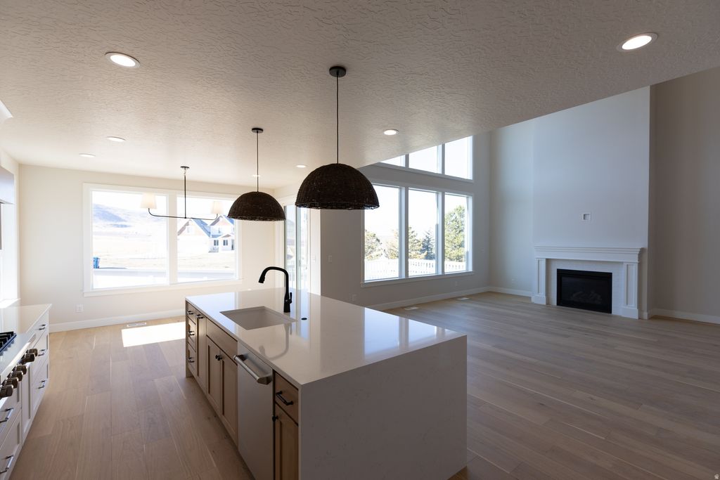 Charming new cottage farmhouse featuring a spacious kitchen with large island, upgraded appliances, and generous pantry with mudroom. Main-floor primary suite includes laundry hookups in the walk-in closet. Upstairs offers three additional bedrooms, an open loft area, shared bath, and a large laundry room. Bright walk-out basement with future potential. Enjoy a large deck and yard, with rear fencing and front yard landscaping included.