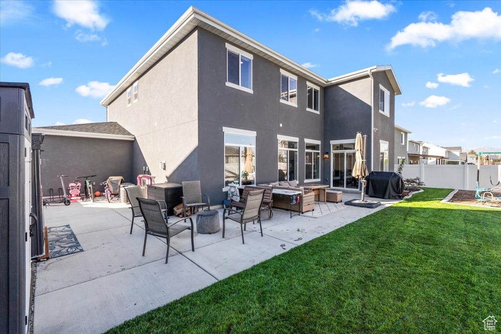 Welcome to this beautiful two-story home in the desirable Stonecreek subdivision of American Fork. This 4-bedroom, 2.5-bath home features a spacious family room with a cozy fireplace, loft, and mudroom, offering plenty of living space for family and entertaining. Enjoy ample storage throughout the home and the convenience of two HVAC units. The fully fenced backyard is an outdoor oasis, complete with mature berry bushes, two storage sheds, a playground, and a trampoline-perfect for both fun and relaxation. The 3-car garage provides additional space for vehicles and hobbies. Ideally located just a 5-minute bike ride to Utah Lake and Monarch Wildlife Park, a protected habitat for the threatened monarch butterfly, this home combines suburban comfort with easy access to outdoor recreation. Stonecreek offers quiet streets, community amenities, and proximity to shopping, dining, and schools, making it a perfect place to call home. Square footage figures are provided as a courtesy estimate only and were obtained from County Records. Buyer is advised to obtain an independent measurement.