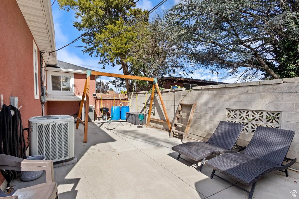 Welcome to this beautifully maintained rambler ranch featuring a 3-car garage and a spacious open-concept layout. The property also includes a Tesla supercharger, allowing you to fully charge your car in just about three hours - perfect for convenience and sustainability. This home offers 3 bedrooms (with the possibility of a 4th-just add a wall, the closet is already in place) and 2 bathrooms.This pet-friendly home features beautiful oak flooring throughout, combining warmth and durability. Recent updates include a new roof (2021) with a 30-year warranty, encapsulated crawlspace (no risk of radon), and winterized outdoor water taps, including a hot water tap. The home also features smartphone-controlled garage doors, hospital-grade air purification with blue light, and a 72-inch ceiling fan in the great room and office for optimal comfort. Step outside to your own private retreat - a Bullfrog Jacuzzi, gazebo with seating and fire pit, a Tuff shed for extra storage and leaf guards on the gutters, keeping maintenance simple and hassle-free year-round. The exterior offers dusk-to-dawn lighting in the front and back for added convenience and security. Enjoy single-level living that can easily be wheelchair accessible in a quiet, no-HOA neighborhood with beautiful mountain views and a prime Midvale location close to everything.