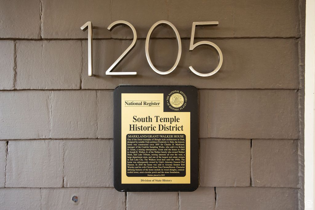 Set on one of Salt Lake City's most storied streets, this Utah Historic Registry home represents the best of classic architecture reimagined for modern living. Perfectly positioned on a quiet portion of this tree-lined stretch of East South Temple, this regal estate offers a rare blend of history, privacy, and refinement conveniently located near the University, downtown, and the city's cultural heartbeat. A gated, secure driveway tucked off a private lane ensures ease of access while maintaining a sense of seclusion. The home's stately columned front porch, mature trees, and master gardenerdesigned landscaping create a picture-perfect welcome, while its distinctive shingle siding evokes timeless East Coast elegance. Inside, the main level exudes warmth and character, with rich hardwood floors, exquisite millwork, and leaded glass windows. Pocket doors open to formal living and study spaces, and a charming powder bath with playful wallpaper adds a touch of whimsy. The formal dining room connects seamlessly to both the kitchen and living room, creating an ideal flow for entertaining. The renovated kitchen honors the home's heritage while incorporating modern convenience, featuring custom cabinetry, built-in storage, and a charming pantry hidden behind an original wood door. A new mudroom provides everyday functionality with direct access to the two-car garage and gated drive. Beyond the interior, the backyard is a private retreat designed for year-round enjoyment. A paver deck anchors the outdoor living space, complete with an outdoor kitchen, fireplace, and a covered lounge area outfitted with power, lighting, shades, and a ceiling fan, perfect for relaxation throughout the seasons. Fully gated and thoughtfully designed, the backyard offers room to dine, lounge, and play without interruption, creating a true extension of the home's living space. The second level is anchored by an inviting primary suite within the home's turret, offering a cozy reading nook framed by arched windows, a gas fireplace, and a marble-clad bathroom with dressing room, laundry, and balcony access. Additional bedrooms on this level include en suite baths, built-ins, and architectural details that capture the home's character. The third floor surprises with a sun-drenched office surrounded by walls of windows, framing views of the hillside and surrounding historic neighborhood. This level also features two additional bedrooms, each with charming window seats, built-ins, and their own private lofts, along with a full bath with dual vanity. The lower level reveals the home's rich history and incredible charm, with exposed brick walls, a gas fireplace, a cozy den, an original bank vault door leading to storage, and a spacious laundry room showcasing new mechanical systems. Every inch of this exceptional home reflects the thoughtful care and craftsmanship of its stewards. Beautifully landscaped grounds, a sense of privacy set back from the street, and the unique combination of architectural significance and modern ease make this a truly once-in-a-lifetime opportunity on South Temple.