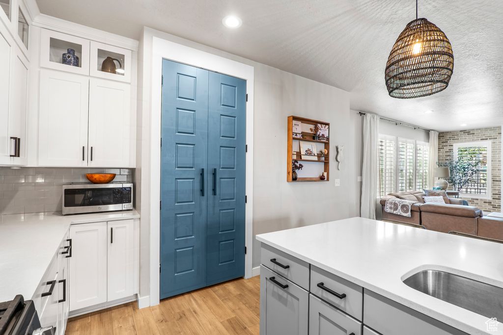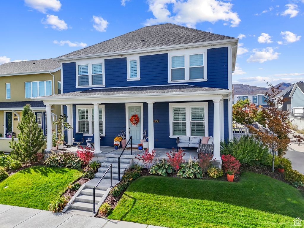 Timeless Colonial-style home in the heart of Highland Park, Daybreak! Walking distance to the new Cove House, Watercourse, and Daybreak's largest park (Highland Park). An entertainer's dream with a spacious, easy-to-navigate main floor and an incredible backyard featuring a large patio under a massive 20'x20' pergola surrounded by mature trees. Interior highlights include plantation shutters, an open floor plan, office with built-ins and a metal sliding door, and a spacious mudroom. Rare four-bedroom layout upstairs with custom closet organization. The modern kitchen features custom cabinetry, pull-out drawers, custom pull-outs in the pantry for convenient storage and optimal space, and upper and under cabinet lighting. The finished basement offers two living areas, a built-in dry bar, LVP flooring, and additional storage. The extended-depth two-car garage provides space for long-bed trucks or extra gear. Classic architecture, modern function, and exceptional outdoor living come together in this rare Daybreak find. Owner/Agent.