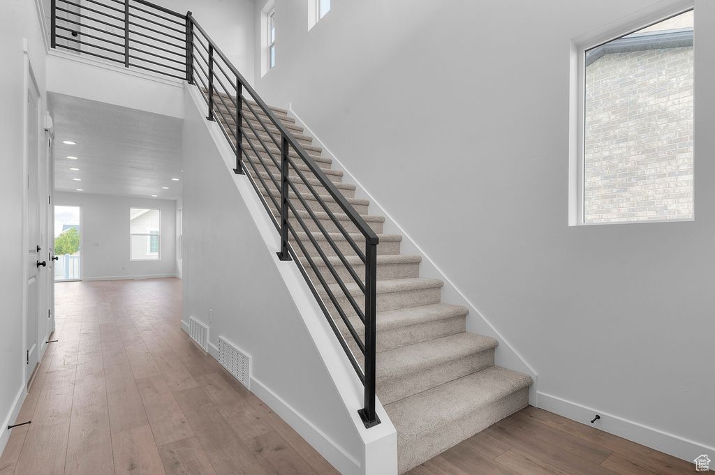 Come see this brand new Goteborg, a beautifully crafted home combining comfort, functionality, and modern design. Enjoy durable and attractive laminate hardwood, tile, and carpet flooring throughout. Additional upgrades include can lighting, Christmas light outlets, and a tankless water heater for energy efficiency and convenience. Also featured you will find elegant Cotton Maple cabinets, quartz countertops, stylish tile backsplash and stainless steel gas appliances. The metal railing at the stairway and Craftsman-style base and casing add refined architectural touches. In the owner's bathroom, quartz shower surrounds and black matte hardware create a luxurious, contemporary feel. With energy-efficient features and thoughtful design details, the Goteborg offers both style and practicality-an ideal place to call home.
