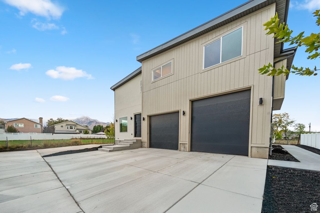 PREFERRED LENDER INCENTIVE AVAILABLE with Intercap lending. This stunning 5-bedroom, 6-bathroom custom home sits on a beautiful corner lot showcasing incredible mountain views. Designed with both luxury and functionality in mind, this residence boasts high-end finishes, a spacious open-concept layout, and full home audio wiring with three zones of built-in speakers included (main level, loft and patio). The main level features soaring 10-foot ceilings, the basement offers 9-foot ceilings, and the vaulted upper level enhances the home's open, airy feel throughout. The expansive 3-car tandem garage offers a 10-foot door on the single bay and a 12-foot door on the extended 39-foot bay-large enough to accommodate a 35-foot Class C motorhome. The home also includes a 2-bedroom 1 bath mother-in-law apartment with a private entrance, full kitchen featuring waterfall island countertops, and its own laundry area-ideal for guests, extended family, or rental potential. Every detail in this home has been thoughtfully curated to blend modern design with everyday comfort, creating a truly impressive and functional living space.