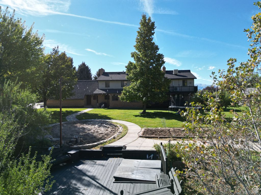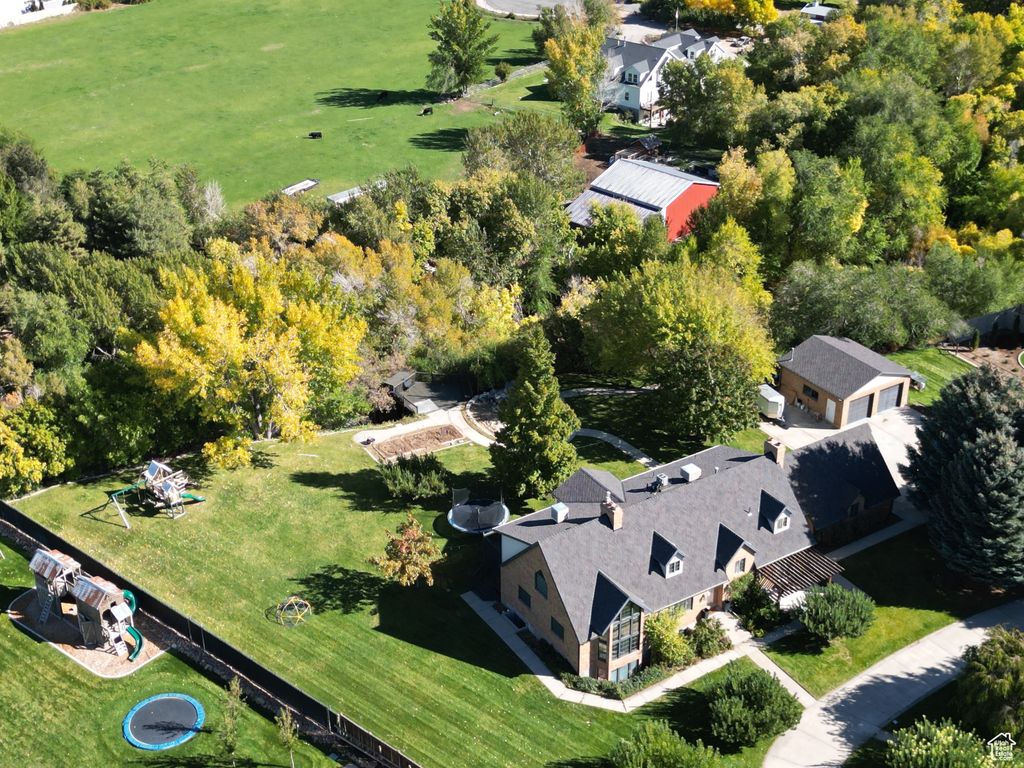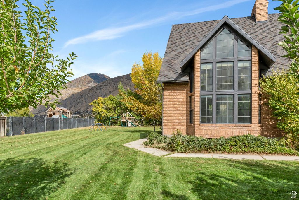 Must-see-one of the best lots in Mapleton, overlooking the stream. This high-quality, two-story home has been partially updated. The heating system includes both hot-water radiant and forced-air heat, along with central air conditioning. The great room features a two-story ceiling with exposed beams, custom moldings, and a cherry-wood spiral staircase leading to the second-floor library. The kitchen has been completely remodeled, and the home includes new flooring and interior paint, refinished wood trim, 50-year architectural shingles, updated heating and air conditioning, a new radon mitigation system, a new mini-split system for the second-level library, and refinished decks. The rear yard includes a detached deck, stairs leading to a lower landing deck, and a climbing wall overlooking Hobble Creek. The large yard is beautifully landscaped. Additional features include a central vacuum system and a basement safe/vault with a Fort Knox vault door and night lighting.