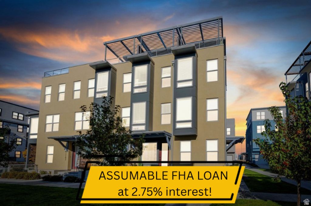 ASSUMABLE FHA LOAN AT 2.75%. TALK TO LIST AGENT FOR MORE DETAILS! Beautiful Daybreak Living! Welcome to this charming home located in the highly sought-after Daybreak community of South Jordan - where every day feels like a retreat! Surrounded by fabulous amenities including Oquirrh Lake, the Bees stadium, dog park, fire pits, playgrounds, walking and hiking trails, pools, tennis courts, and so much more - you'll love the lifestyle this neighborhood offers. This home features 3 spacious bedrooms, 1 full bath, 1 three-quarter bath, and 1 half bath. The large open kitchen is bright and inviting with white cabinetry and plenty of space for cooking. The open-concept layout flows beautifully to an upper-level deck where you can relax and take in the incredible views. The main floor room offers flexible space - perfect for a home office, exercise room, or formal living area. Enjoy the open green space right in front of the home - ideal for a peaceful view or a quick game of catch. Come see why Daybreak is one of Utah's most desirable communities - this home is ready to welcome you!