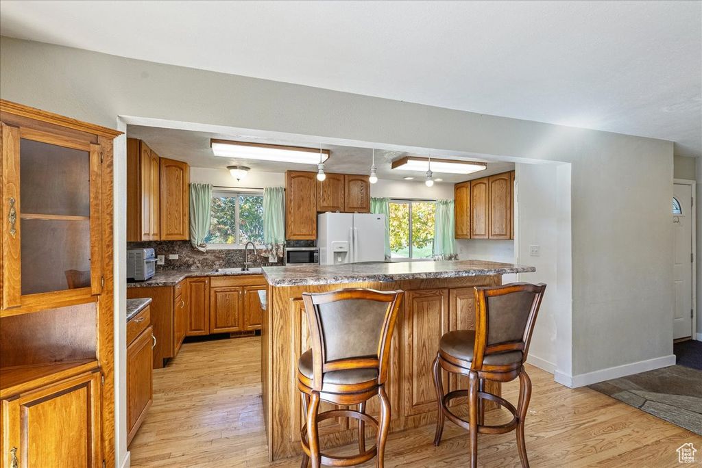 You'll fall in love with this beautifully maintained brick rambler with recent improvements! The spacious kitchen offers ample cabinet space and a large peninsula with seating, perfect for everyday living or entertaining. Hardwood floors, two cozy fireplaces, and abundant natural light add warmth and character. Nestled on a private lot with mature trees and a well-kept yard, this home combines convenience and comfort in a desirable location. Schedule your private showing today!